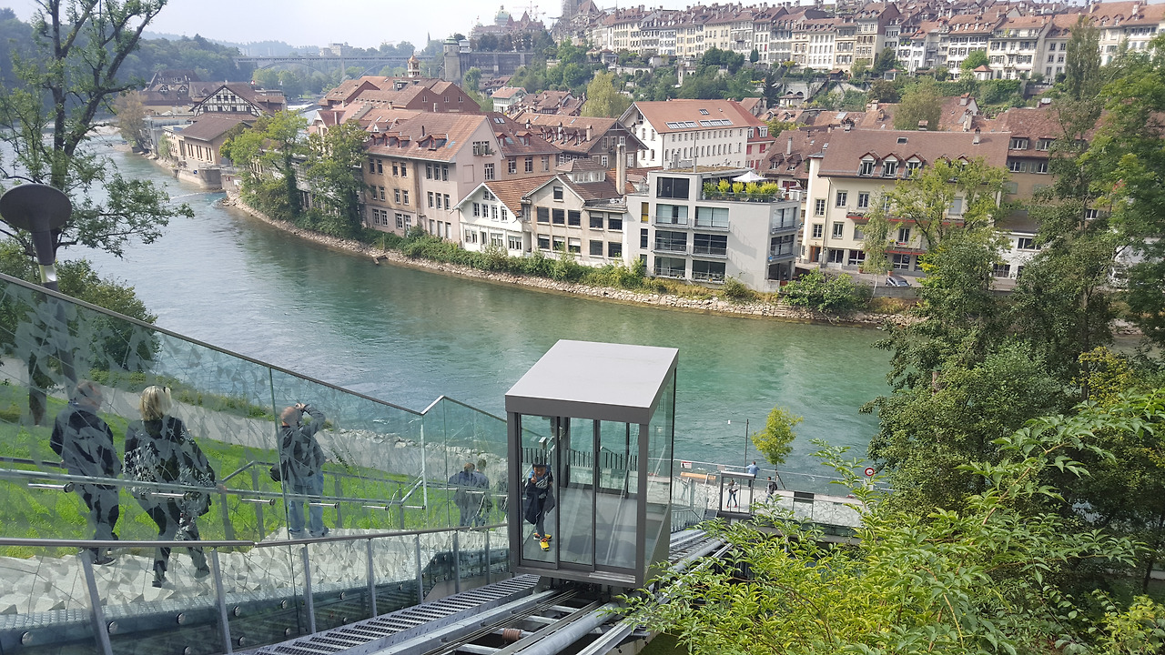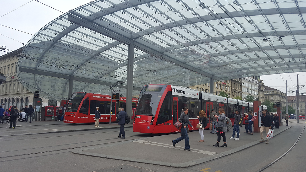 베른역 밖으로 나오면 중세시대의 건물 형태를 그대로 유지한 베른의 구시가지와 함께 중세시대 건물들과 어울릴 것 같지 않은 현대식 교통수단인 트램 정류소가 바로 보인다. 인문학과 공학으로 대표되는 역사와 과학의 조화인 듯하다.