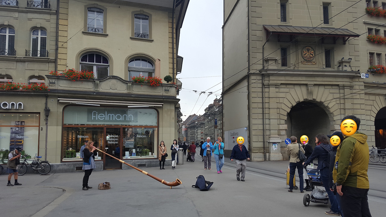 조금 걸어가니 스위스의 전통악기로 버스킹 공연을 하는 사람들이 눈에 띈다. 한국에서는 볼 수 없는 공연이라 관심이 갔다.