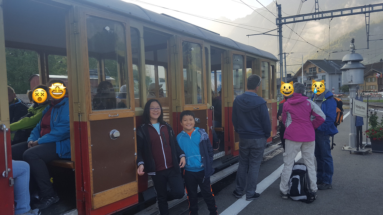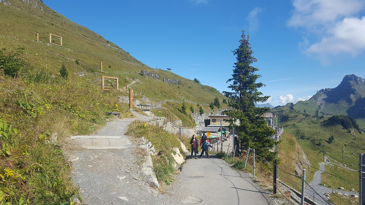 경치를 감상하며 사진을 찍으며 천천히 걷다 보니 쉬니케 플라테 역까지는 약 50여분 정도가 소요되었다. 우린 쉬니케 플라테 역에 도착 후 처음 도착했을 때 역광 때문에 미뤘던 액자 모형을 배경으로 기념사진을 찍은 뒤 쉬니케 플라테에서의 일정을 끝내고 뮈렌으로 이동했다.