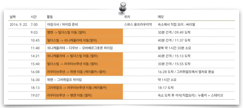 알프스 하이킹 여행을 통해 잊을 수 없는 풍경을 만날 수 있었던 쉬니케 플라테~피르스트 하이킹은 융프라우 하이킹을 계획한다면 적극적으로 추천하고픈 코스이지만 6시간이 넘는 장거리 하이킹이 조카들에게는 아직 무리일 것 같아 이번 여행에서는 짧은 코스의 하이킹으로 만족하기로 했다.