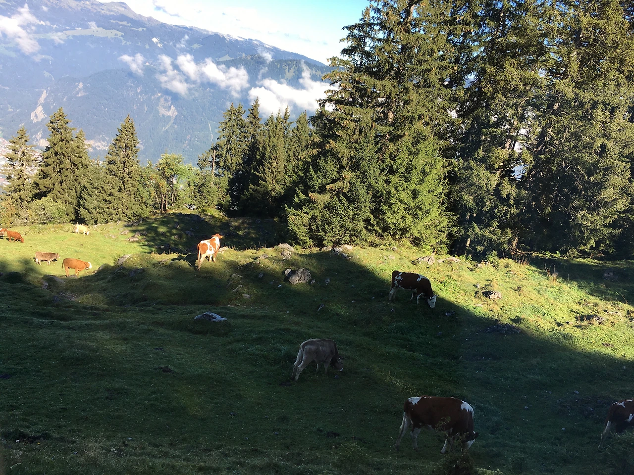 열차가 출발한 뒤 고도가 점점 올라가자 소들이 여유롭게 풀을 뜯고 있었는데 스위스의 이미지 때문인지 여유로운 소들의 모습이 주변 배경과 너무도 잘 어울렸다.