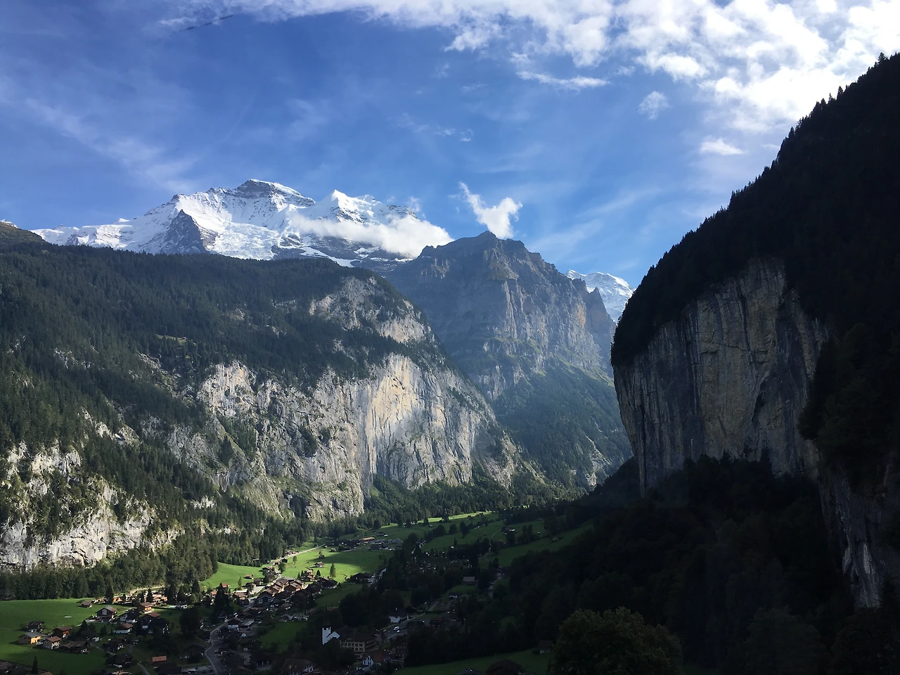 케이블카를 타고 올라가다 보면 거대한 라우터브루넨 계곡과 라우터브루넨 마을이 한눈에 보이는데 계곡에 비해 집들이 너무 작아 마치 미니어처를 보는 듯하다.