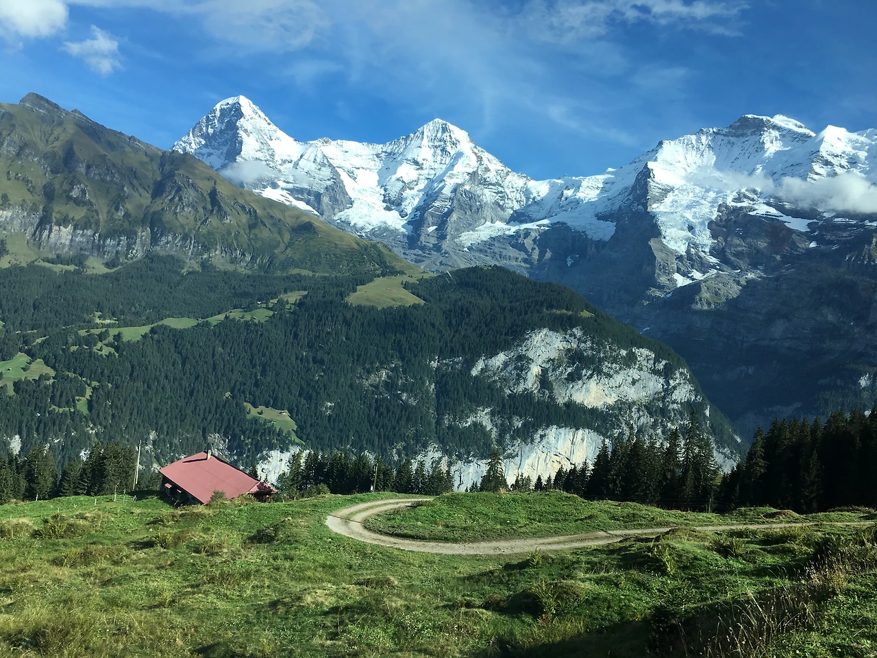 그린델발트에서는 아이거가 주연이 되고, 벵엔에서는 라우터브루넨 계곡이 주연을, 뮈렌에서는 아이거, 묀히, 융프라우가 동시에 주연을 맡아 연기를 하고 있다는 생각이 들었다.