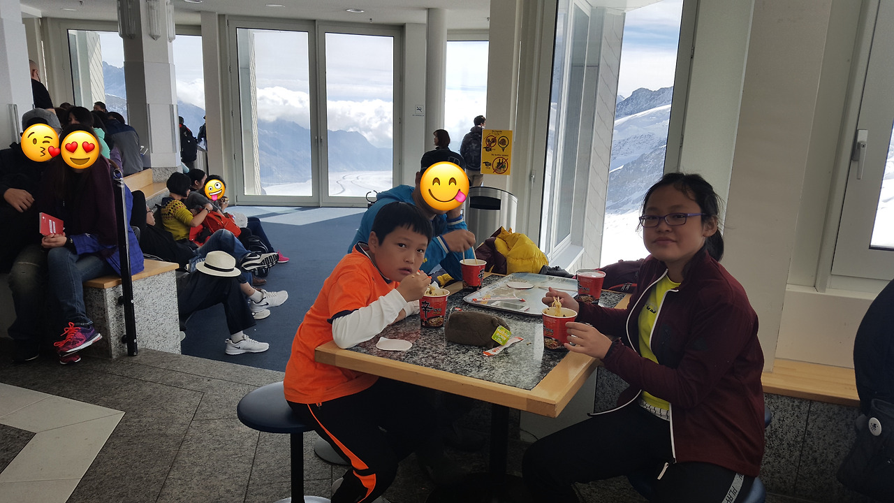 약 2시간의 하이킹 후 우린 VIP Pass 구매 시 받은 신라면 쿠폰으로 전망대에서 신라면을 먹었는데 아마도 신라면의 홍보 효과는 엄청날 듯하다. 우리 외에도 융프라우요흐를 방문하는 한국사람들 대부분은 신라면을 먹는 것 같았다. 고산증세도 오는 데다 지친 상태에서 맛보는 매콤한 라면은 만족스럽지 않을 수가 없었다.