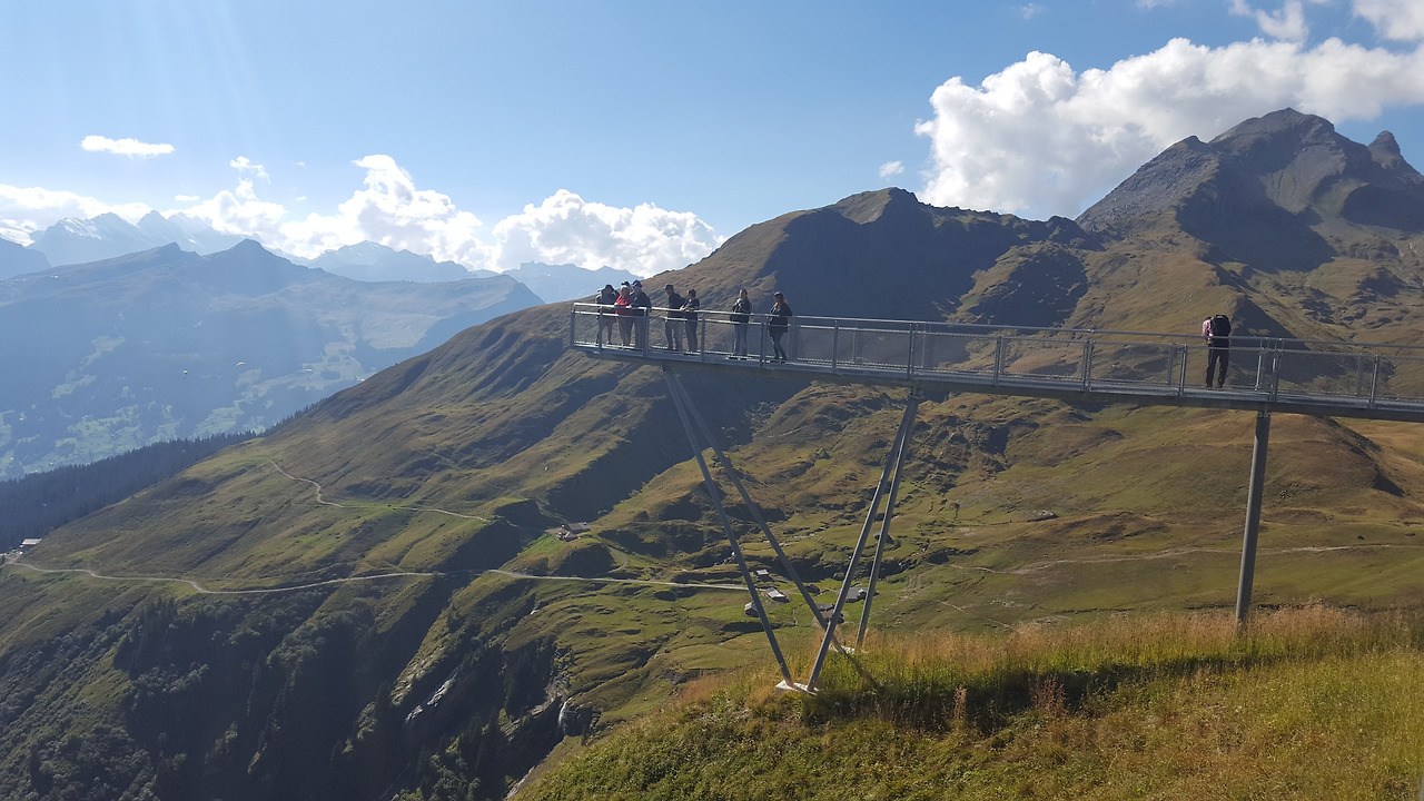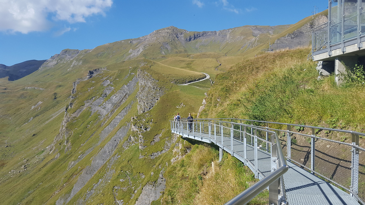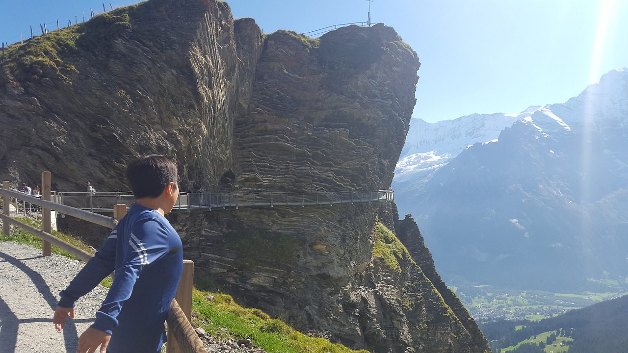 보르트에서 시간을 보낸 뒤 우린 다시 곤돌라를 타고 피르스트로 향했다. 피르스트에 내리자 전에는 보지 못했던 새로운 보행로가 있었는데 보행로를 따라 가보니 아찔한 암벽을 따라서 연결되어 있었다. 피르스트의 새로운 명물인 클리프 워크였다.