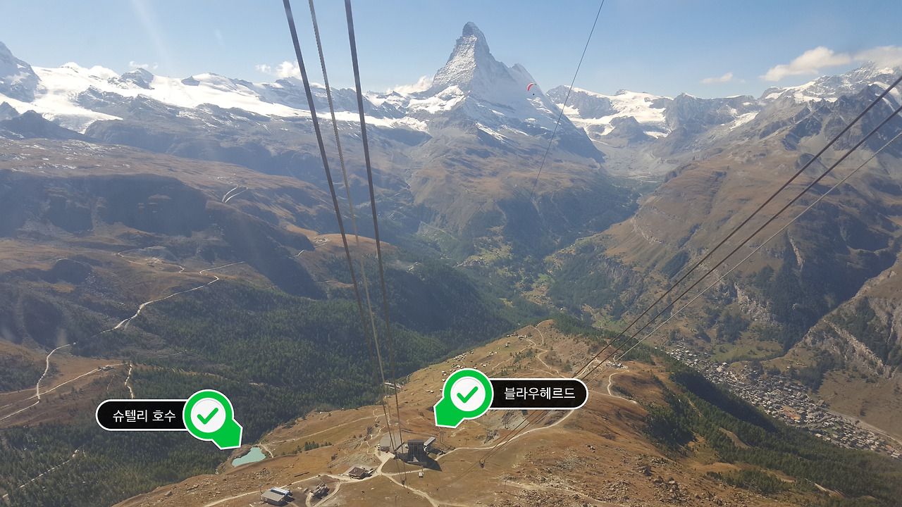 체르마트 하이킹을 대표하는 5개의 호수길 중 첫 번째 호수에 해당하는 슈텔리 호수는 블라우헤르드에서 멀지 않은 거리에 있다. 많은 아쉬움을 남겼던 로트호른에서 케이블카를 타고 내려가면 블라우헤르드와 슈텔리 호수가 한눈에 보여 멀지 않음을 알 수 있다.