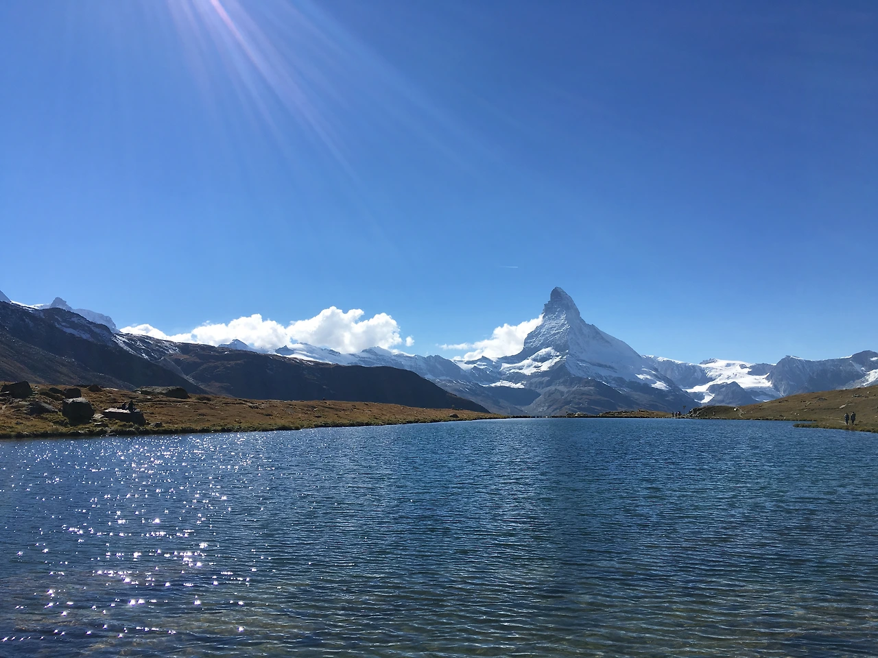 점심을 먹으며 둘러보니 많은 사람들이 호수 건너편에서 쉬고 있는 것이 눈에 들어왔다. 생각해보니 우리는 호수와 마테호른 사이에 앉아 쉬고 있었고 다른 사람들은 마테호른와 호수를 함께 바라보고 있었던 것이다. 그제야 건너편 쪽이 뷰포인트 임을 깨닫고 자리를 정리하고 건너편으로 이동했다.