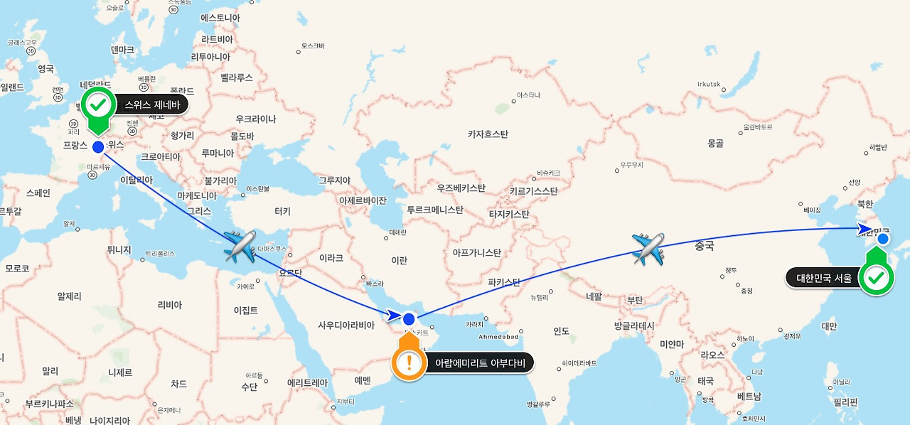 우리가 선택한 비행노선은 제네바를 출발해 아부다비를 경유해서 서울로 가는 비행기였다. 직항보다 시간은 더 걸리지만 가격이 저렴하고 경유지인 아부다비에서 페라리 월드를 방문하기 위함이었다.