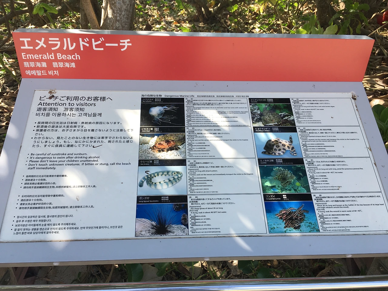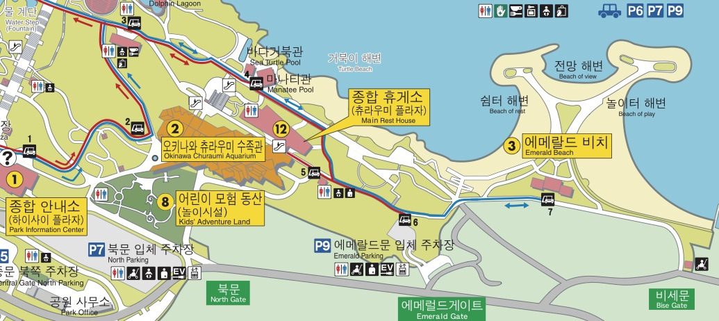 추라우미 수족관뿐만 아니라 에메랄드 비치 역시 입구에 한국어 안내가 병행 표기되어 있었는데 아마 해양엑스포공원을 방문하는 한국인들이 많아서 공원 내 모든 시설물에 대해 한국어 안내가 되어 있는 것 같다.