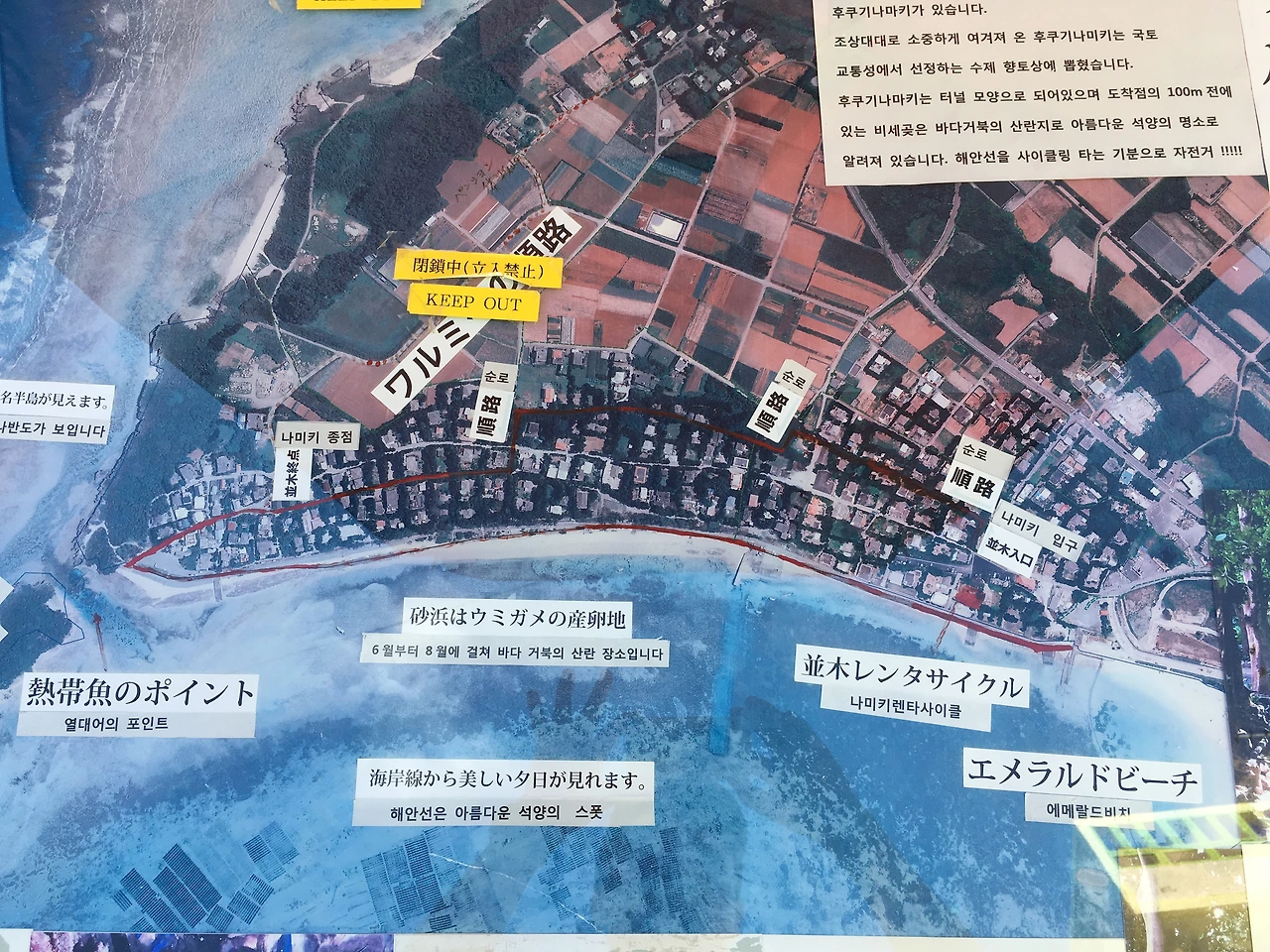 우린 오전 시간을 후쿠기 나미키에서 보낼 계획이었지만 에메랄드 비치의 매력에 빠져 오랜 시간을 머문 탓에 점심시간이 다되어서야 도착했다. 후쿠기 나미키는 에메랄드 비치에서 매우 가까운 곳에 있어 걸어서도 이동이 가능하지만 우린 정확한 위치와 거리를 몰라 차량을 이용했다.