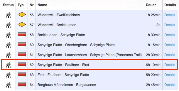 융프라우 하이킹 코스는 올레길처럼 코스 번호가 정해져 있다. 우리가 정한 쉬니케 플라테~피르스트 구간은 62번 코스이다. 총 하이킹 시간은 6시간 10분!! 하루를 모두 이곳에 소비해야 한다.