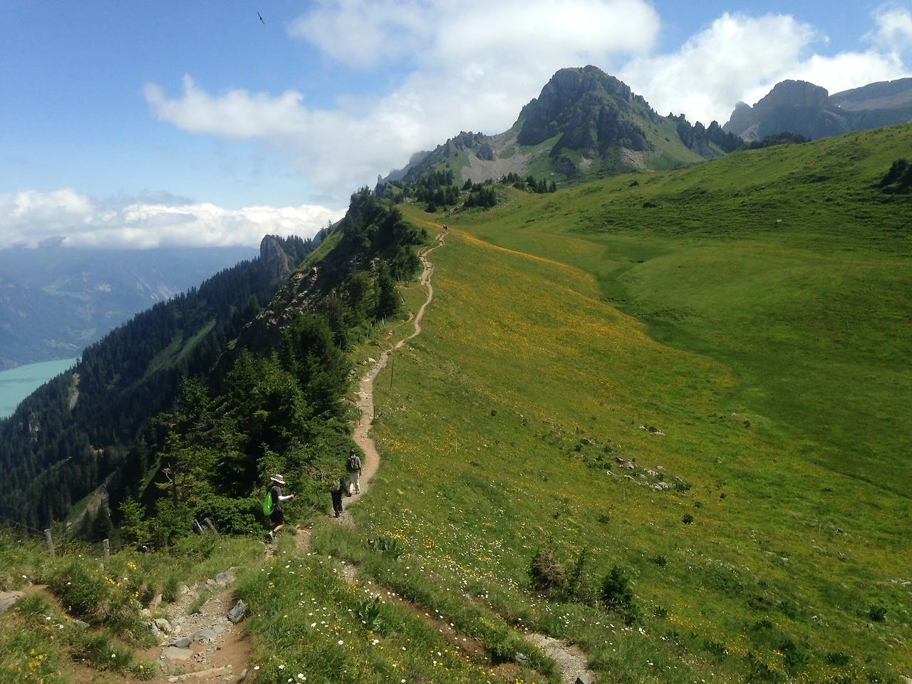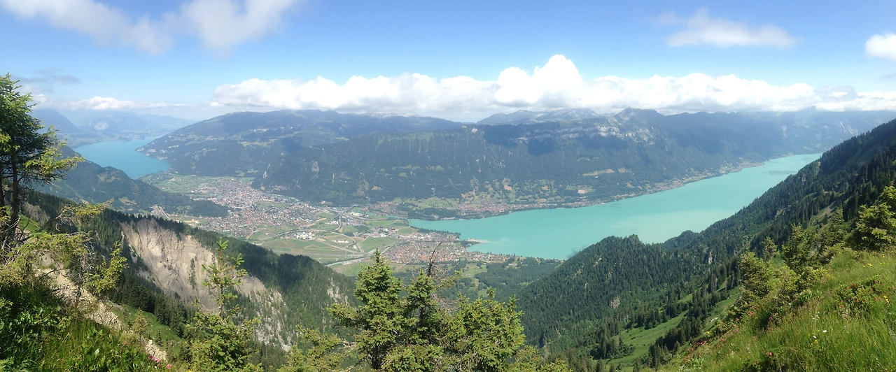 쉬니케 플라테~피르스트 하이킹 코스(62번 코스)의 매력은 브리엔츠 호수와 융프라우 산군을 모두 감상하며 걸을 수 있다는 점이다. 걷다 보면 왼쪽으로 브리엔츠 호수와 인터라켄이 눈앞에 펼쳐진다.