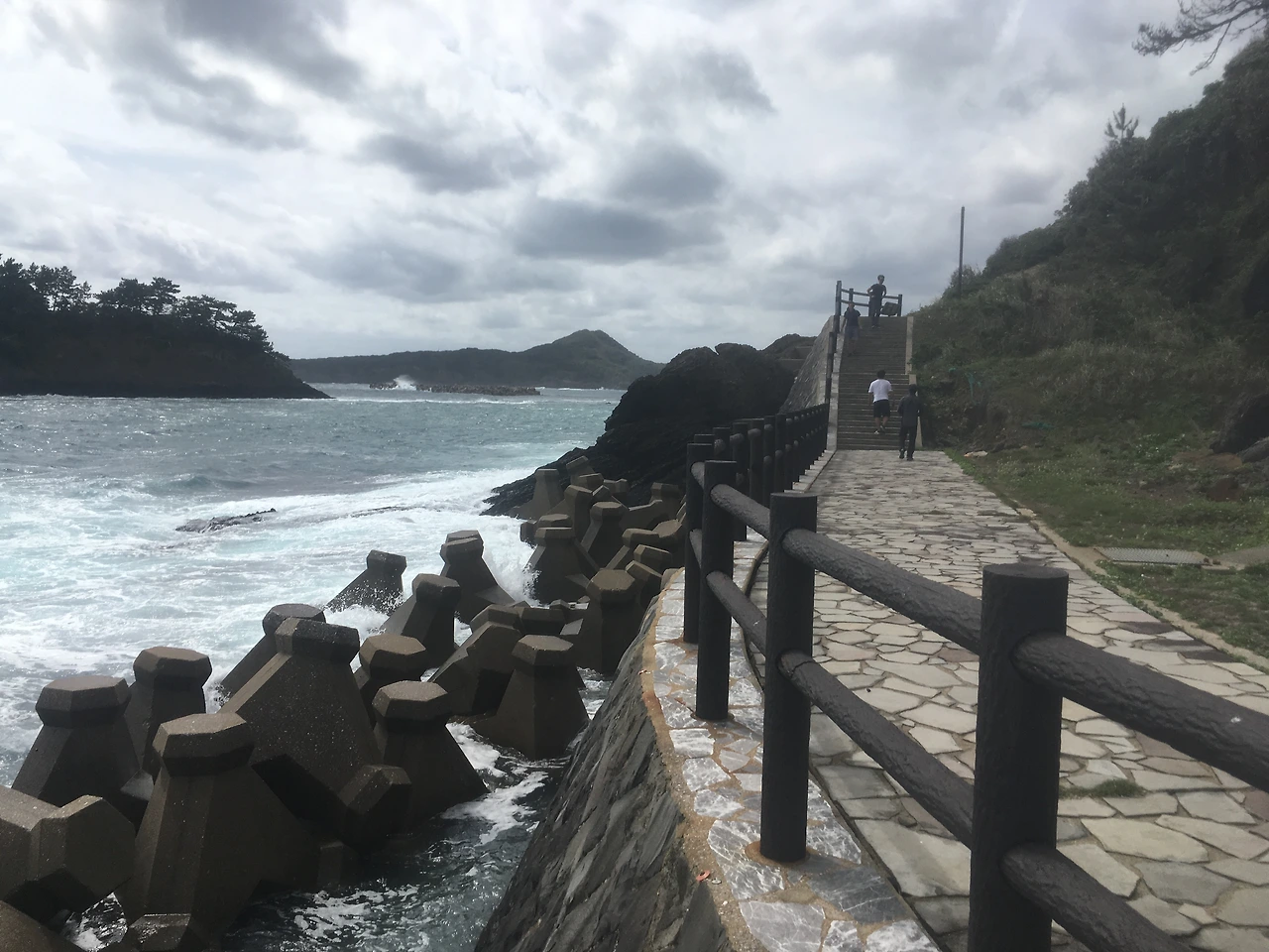 해수욕장 옆으로는 해안을 따라 카미소 호텔로 연결되는 산책로가 조성되어 있었다. 호기심에 따라간 산책로는 우리를 넓은 바다 전망으로 안내했고 바다와 이어진 산책로 끝에는 히타카츠항으로 들어오는 배를 감상할 수 있도록 벤치도 있었다.