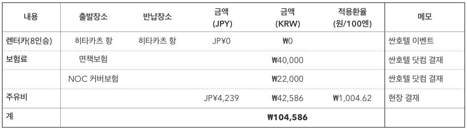 여행 당시 슬로스 글램핑 리조트는 평일 숙박 예약을 할 경우 렌터카를 무료로 대여해주는 이벤트를 하고 있었다. 렌탈비가 빠진 것도 여행비용 절감에 큰 몫을 했다.