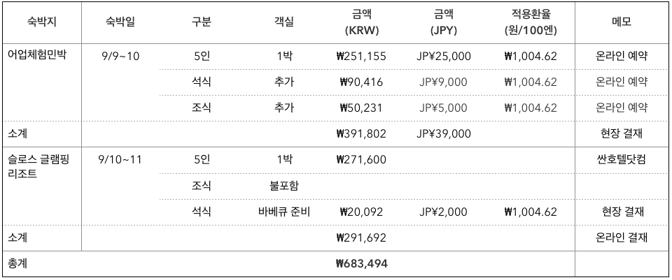 체험민박은 원래 낚시를 위해 예약했었지만 경험해보니 민박 자체도 매우 깔끔했고 무엇보다 식사가 너무 좋았다. 대마도 여행 중 체험민박을 하게 된다면 식사는 반드시 포함하는 것이 좋을 것 같다. 다만 집주인과 함께 사용하기 때문에 밤에 시끄럽게 떠드는 것은 주의해야 한다. 체험민박은 "쓰시마 블루투어리즘 협회"에서 예약이 가능하다.