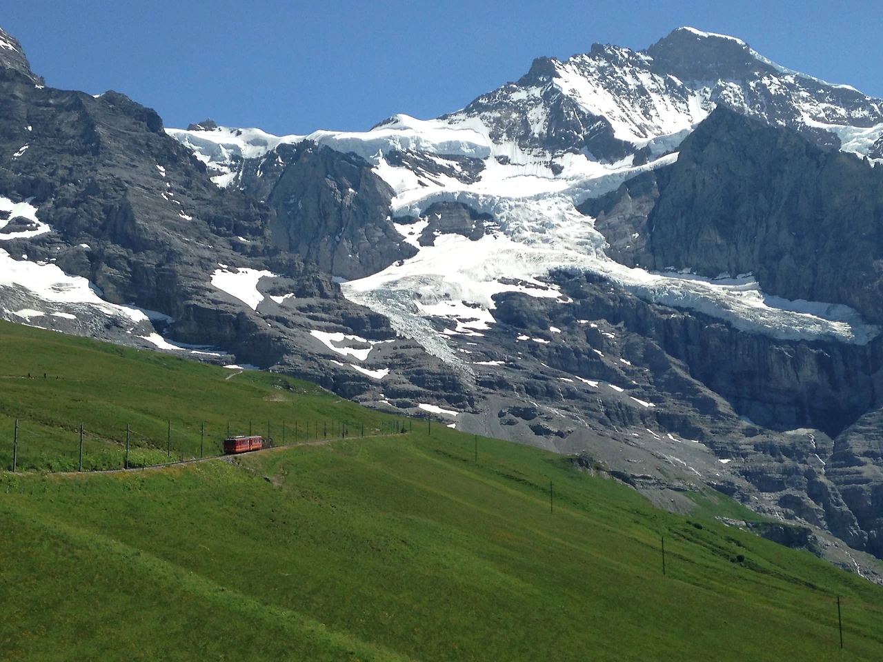 사실 감상이라기보다는 감상이라는 명분으로 안락함과 하이킹 두 가지 욕구에 대해 고민하고 있었다.^^;;; 하이킹 여행이다 보니 프랑스에서 스위스로 이동한 하루를 제외하곤 여행 내내 하이킹을 하고 있었다. 이날도 계획상으로는 클라이네 샤이덱에서 벵엔을 거쳐 라우터브루넨까지 하이킹을 하는 것이었지만 몸의 안락함에 대한 그리움이 밀려오며 벵엔까지 기차를 타고 내려가는 것에 대해 고민했던 것이다.