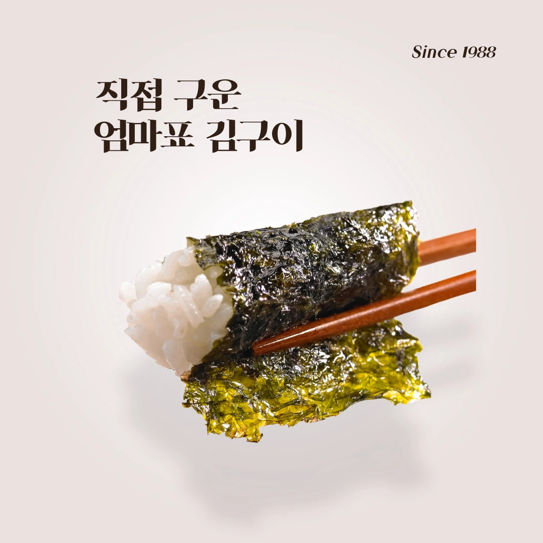 예전이나 지금이나 아이들은 김 한 장 이면 밥한 그릇 우습게 먹어치울 수 있었을 것이다. 나 또한 그랬다. 지금은 맛보기 힘든 엄마표 김 은 정말 너무 맛있었다. 당시 한 장 한 장 기름 발라 소금 치고 차곡차곡 올려놓고 김을 굽는 엄마를 나는 곧잘 보았다.