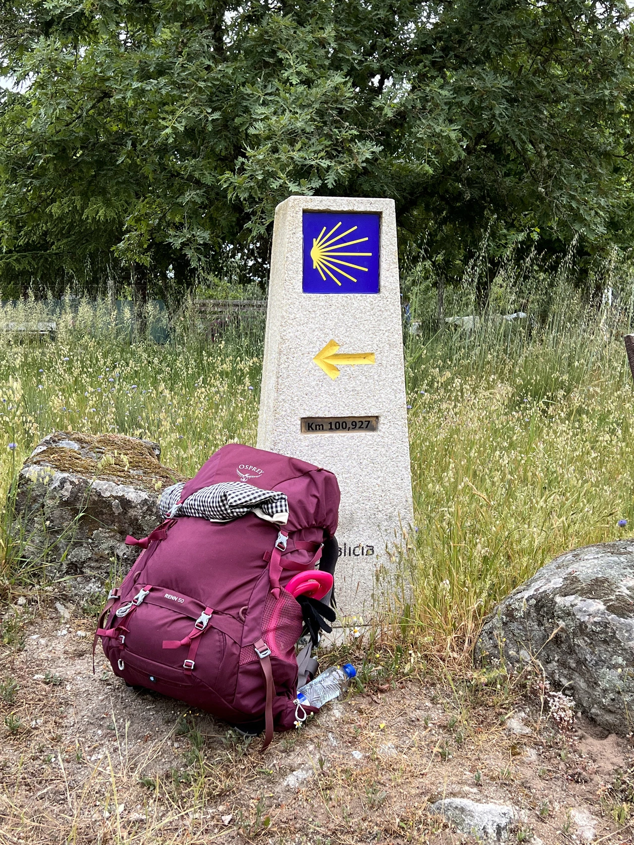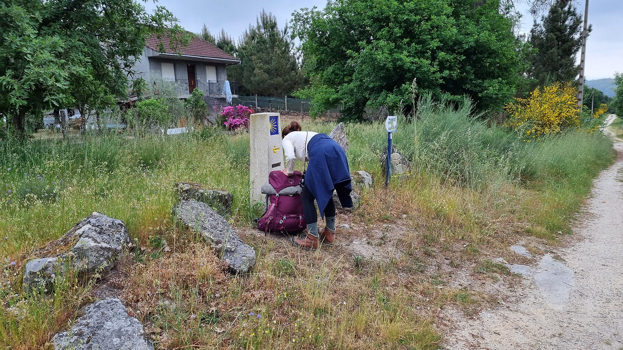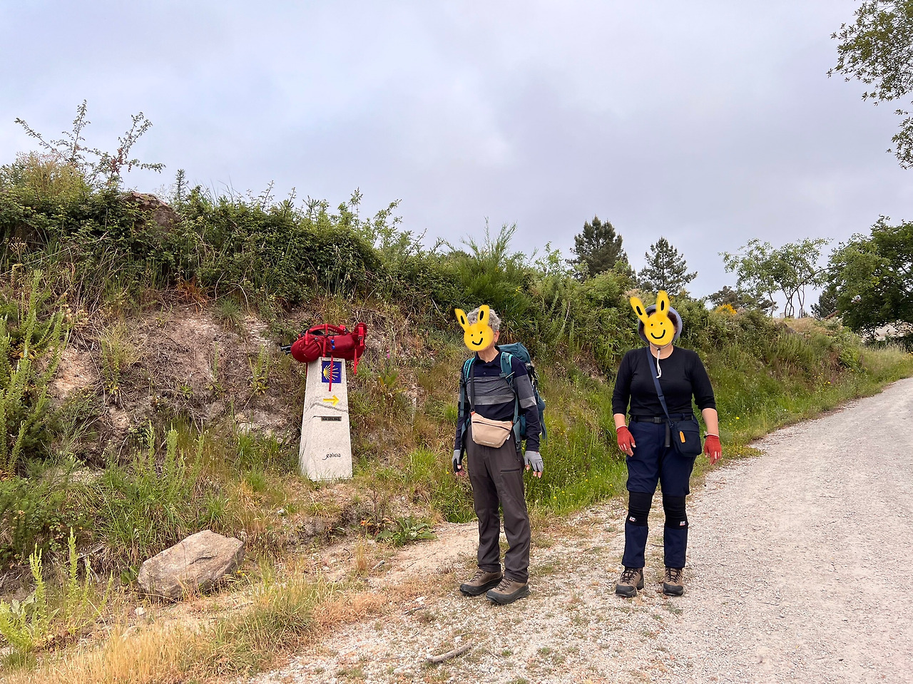 오우렌세부터 표지석에 새겨진 잔여거리가 눈에 띄게 줄어든다. 세 자릿수가 얼마 남지 않았다. 103km, 102km, 101km… 두 자릿수를 만나기가 얼마나 힘들던지, 사실 표지석을 제대로 신경 못쓸 만큼 언덕이 매우 높다. 뭔 놈의 동네 고개가 이렇게 가파른지 숨이 꼴딱 꼴딱 넘어간다. 와중에 아빠는 저만치 앞장서서 가고 있다. 컨디션이 좋지 않은 엄마가 걱정되었는지, 한 고개를 넘고 아빠 가방을 두고 다시 내려와 한참 뒤떨어져 걷는 엄마를 마중 와서 가방을 건네받는다.