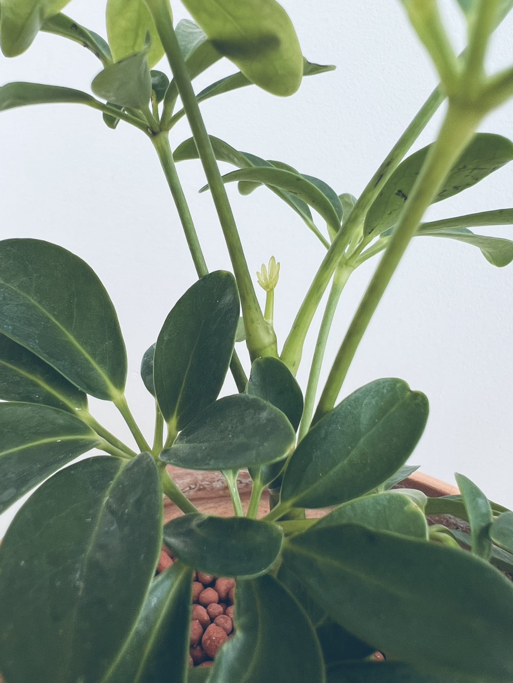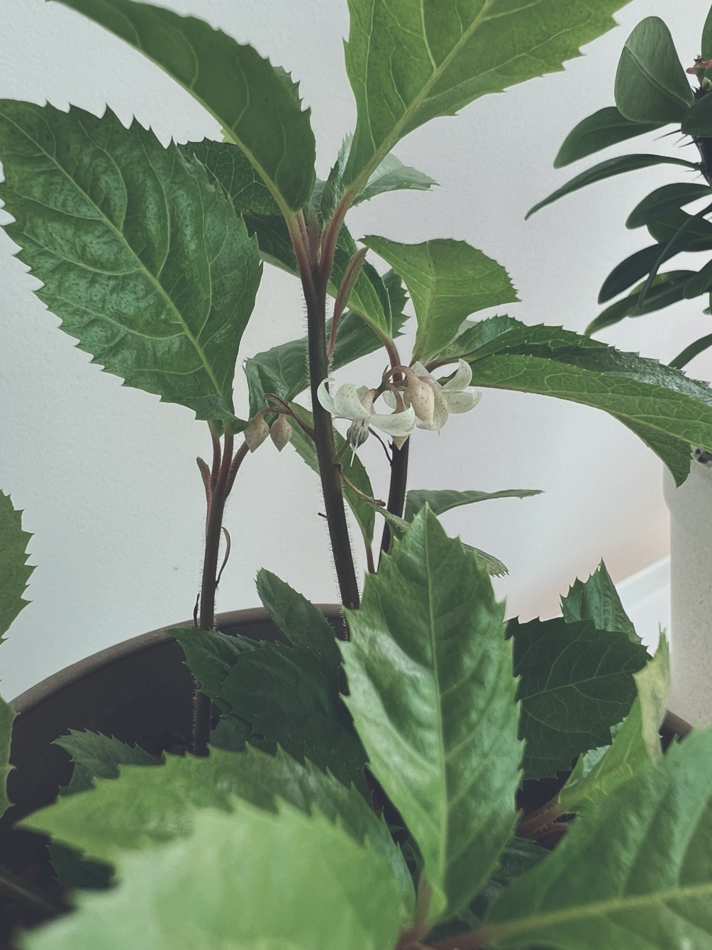 세상이 딱 적당한 온기와 물기를 머금었나 보다. 작은 녀석들의 성장세가 가파르다. 산호수는 물방울처럼 맺혀 있던 꽃이 어느 순간 꽃잎을 활짝 터뜨렸다. 여리여리한 가지의 마디 사이에 숨여있던 작은 이파리들이 하늘을 향해 고개를 들어 올린다. 이 주 전쯤 지인에게 어린 담쟁이덩굴을 받았다. 집에 더 이상 화분을 늘리고 싶지 않던 터라 수경으로 기르려고 뿌리를 정리해 며칠 물에 담가 뒀었다. 뿌리가 썩어 버리는 경우도 있다고 해서 큰 기대는 하지 않았는데 그 녀석마저 물아래에 건강히 뿌리를 내리고 있다. 가는 뿌리가 흰 수염같이 길게 나와서 조금 놀라기도 했다.
