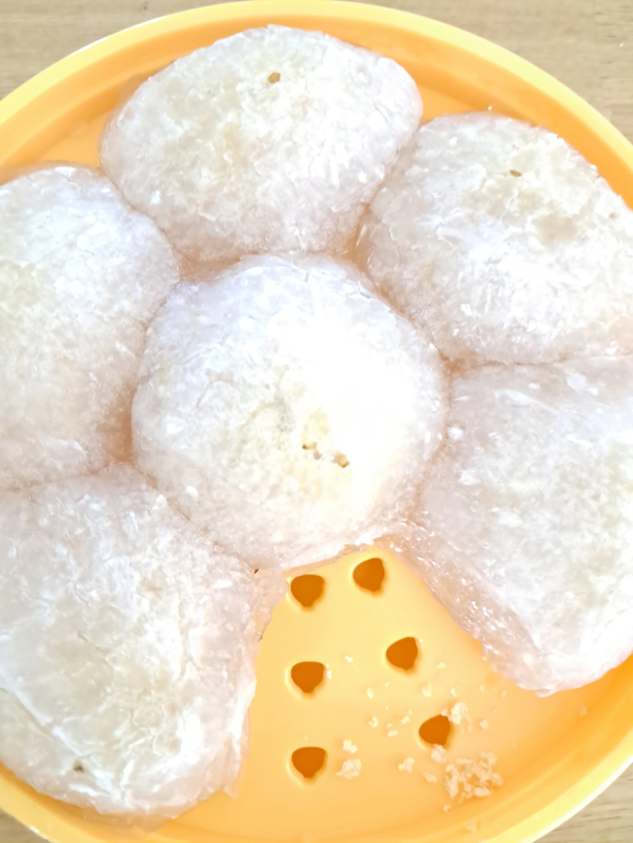 렌지에 7분 정도 돌린 것 같아요. 뚜껑 잘 덮으면 더 투명하게 쪄질 것 같은 예감. 다음에는 더 잘해야지.