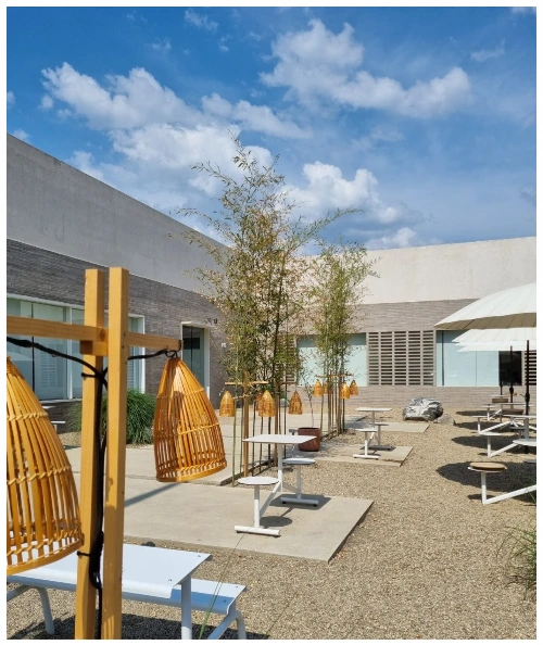 벤치에 앉아서 향기로운 커피 한잔을