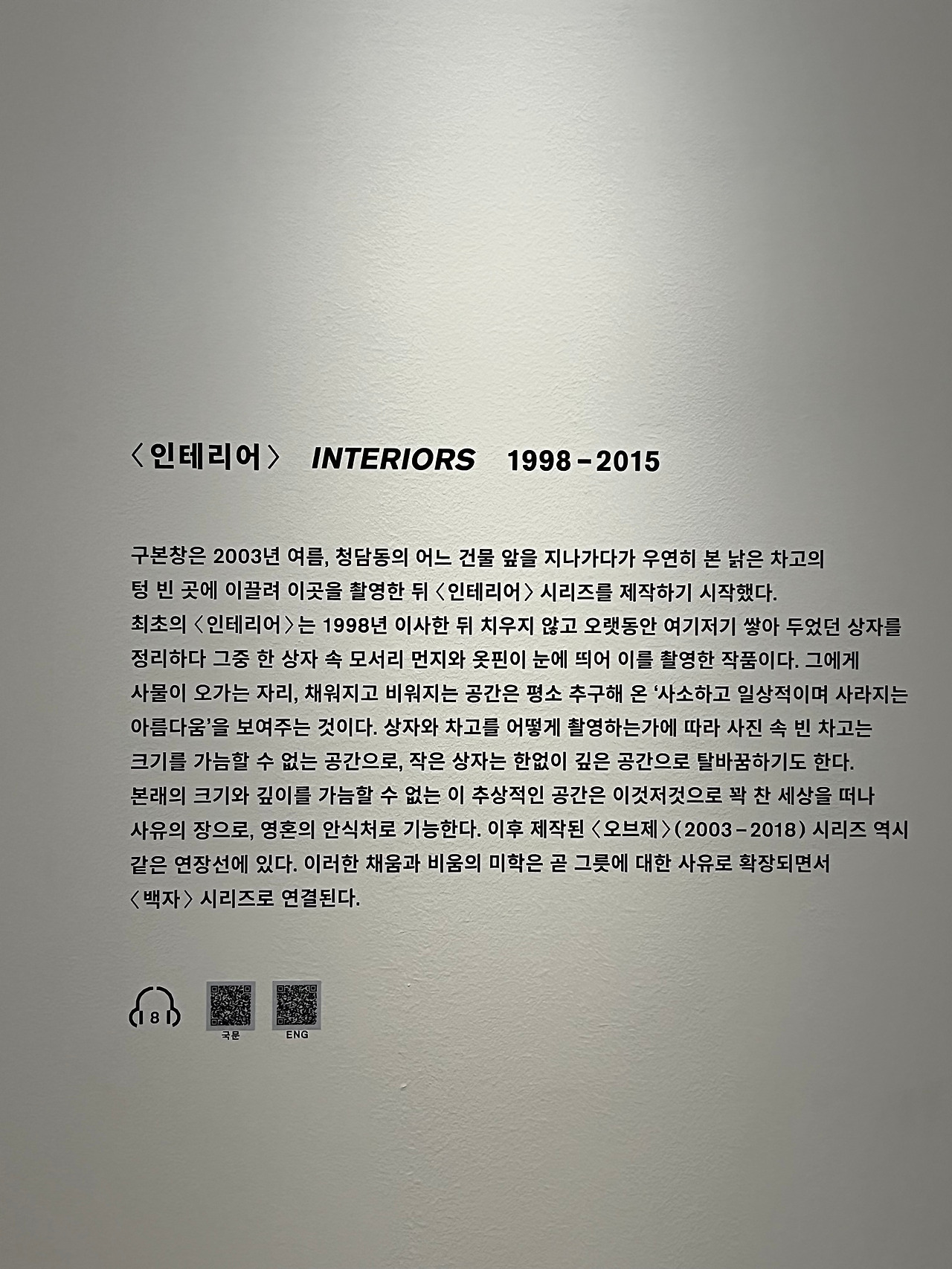 반면 구본창 작가의 사진에서는 최대한 비워지고 모든 것이 소거된 형태의 공간이 등장하면서
