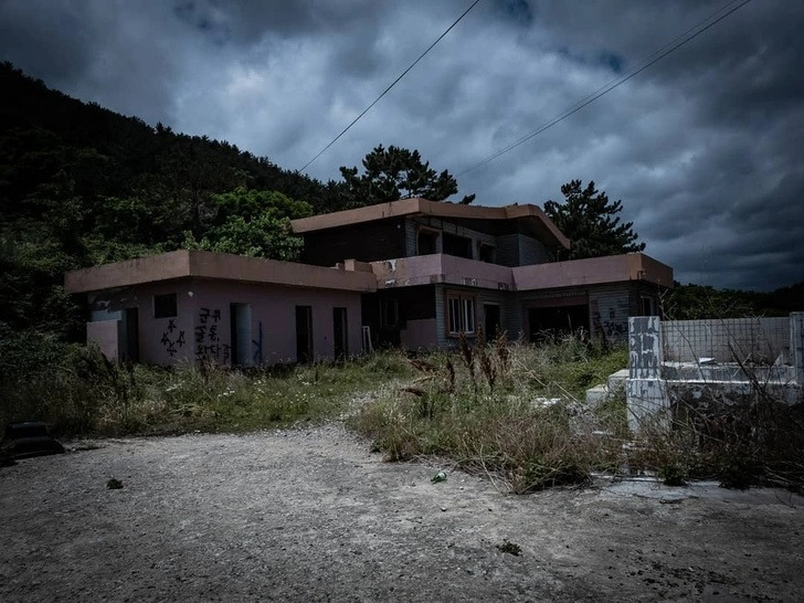 창문은 텅 빈 눈구멍처럼 나를 바라보고 있었고, 무너져 내린 지붕은 마치 거대한 입을 벌린 듯했다.