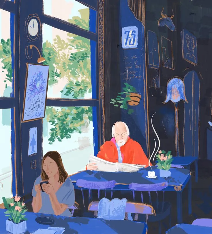 나이 든 주인장은 말이 없다. 그는 내게 어떻게 지내는지 묻지도 않고, 굳이 대화를 시작하려 하지도 않아. 그저 내 앞에 컵을 놓아두고는 계산대 뒤로 물러나 자신의 생각에 잠길 뿐이다. 이 고요함 속에는 나름의 치유가 있어. 굳이 말을 고르지 않아도 되고, 겉모습을 유지할 필요도 없어. 그저 나 자신으로, 생각에 잠긴 채 온전히 존재할 수 있는 거지.