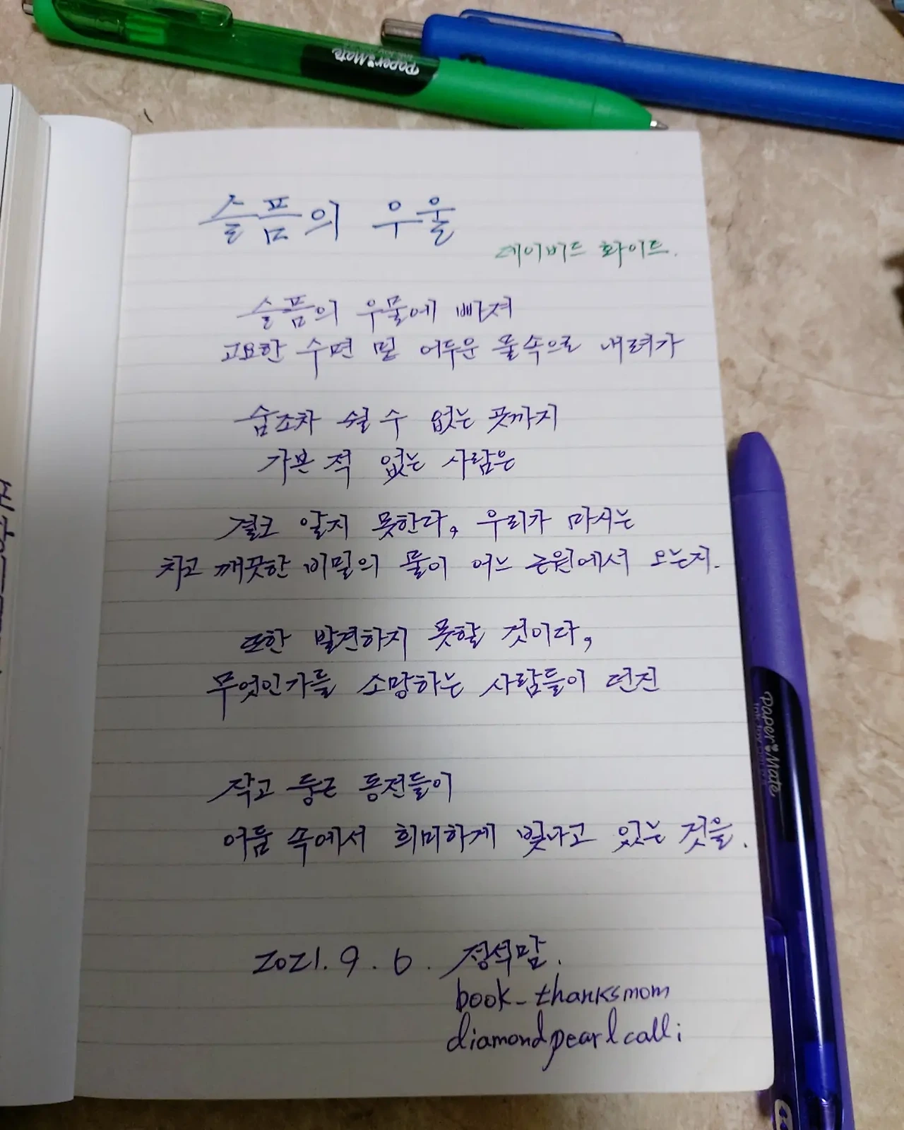 #마음챙김의시 #류시화 #책 #책스타그램#210906 #데이비드화이트#슬픔의우울#슬픔 #인내#우울 #결실#좋은글#좋은글귀#필사 #가을#오늘의시 #아픔#성숙#비밀#소통#일상#감상#감동#감사합니다