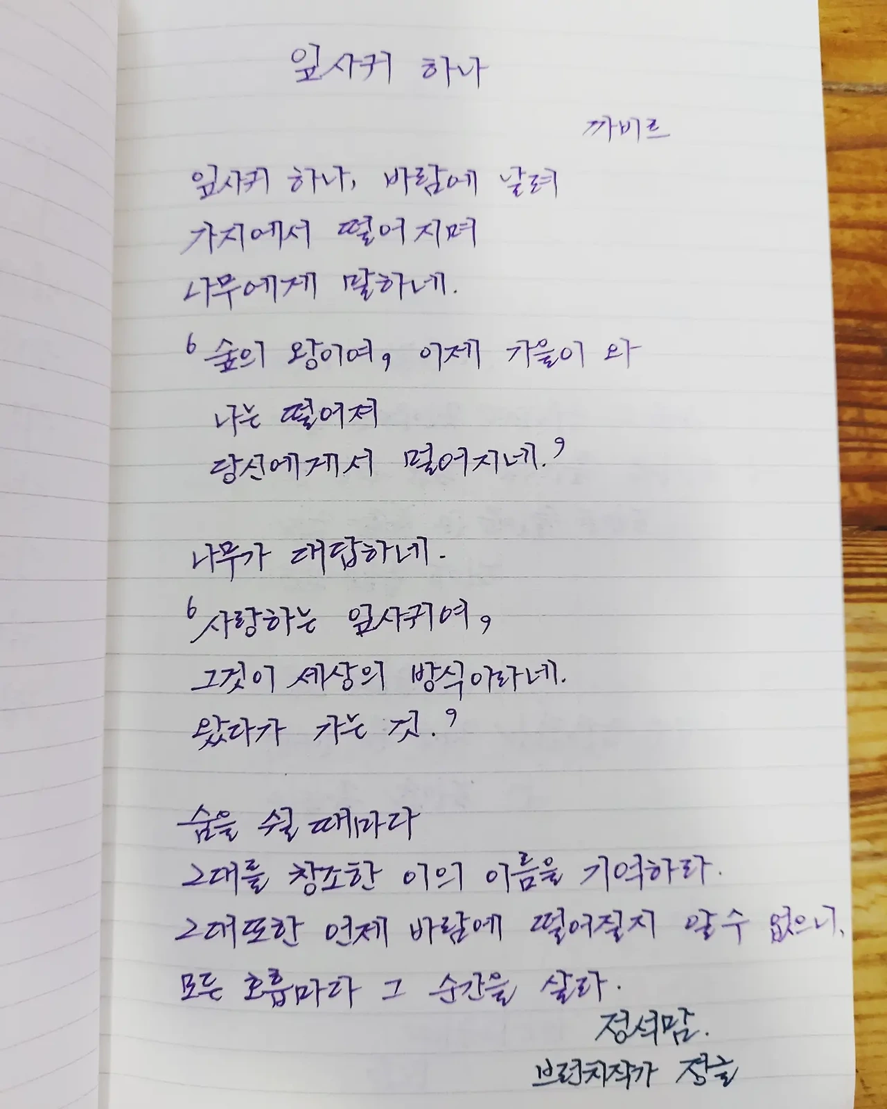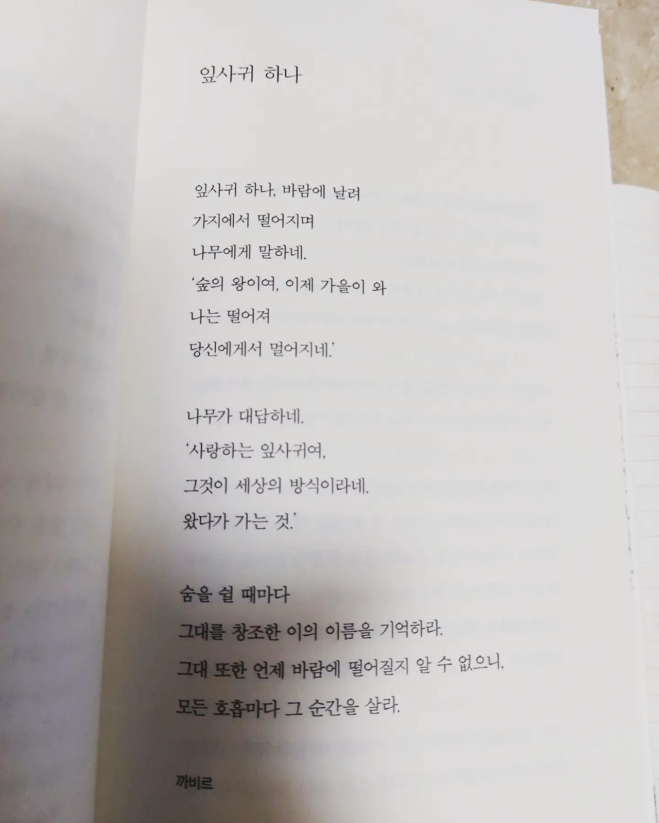 #마음챙김의시 #류시화#7 #잎사귀하나#까비르#시#시집#감상#나무#이별#생#순간#호흡#책#독서#낭독##사랑#삶#희망#감성#감동#시쓰는정글#정글씨 #감사합니다