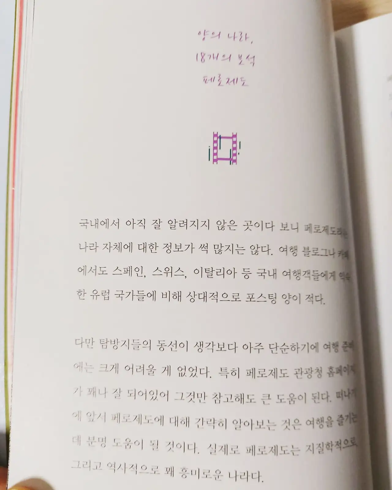 페루라는 나라는 알았지만 페로라는 제도는 이 책을 통해 처음 접했다. 자연 그대로의 모습이 보존되어있는 페로제도의 경관은 너무나 아름다운 곳이었다.