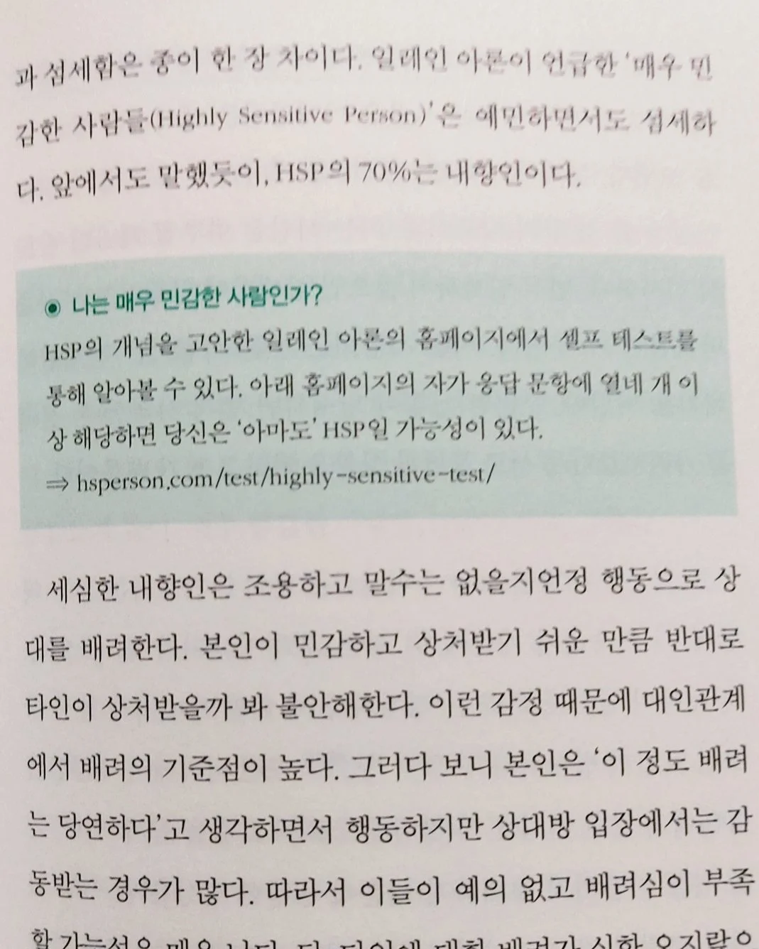 책에서 말하는 내향형은 예민한 편이라고도 한다. 나는 열정적인 중재자이다. 여러 사람들의 의견에 모두 귀 기울이고, 그 의견들에 일일이 다 신경을 쓰며 차례차례 거기에 대한 답을 해주려고 노력한다. 그렇지 않으면 듣고도 무시당한다는 상처를 상대가 받을까봐, 나의 한정된 에너지를 넘어선 채로 모든 의견들에 대처하려고 하다가 집에 오면 넉 다운이 되어있다.