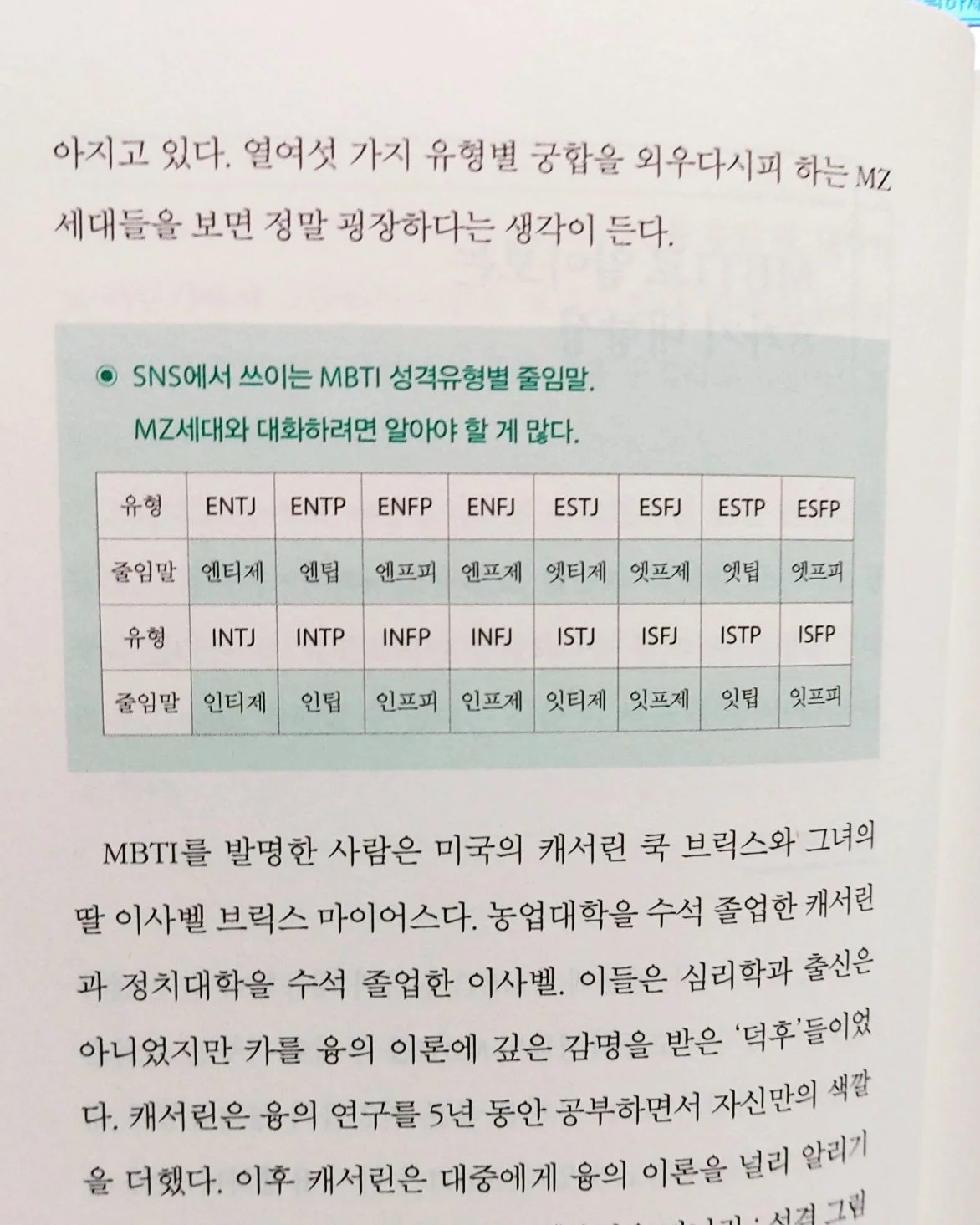 이 책에 소개되는 MBTI 검사에 대한 내용을 읽고 인터넷에 떠돌아다니는 전문적이지 않은 무료검사를 다시한번 해보았다. 12분정도가 걸리는 총 70문제에 그렇다.보통.아니다 중에 체크를 하면서 나를 테스트 해보는 계기가 만들어졌고, 결국 나는 E(외향형)이 아닌 I(내향형)임을 다시한번 확정짓게 되었다. 나는 외향형이 되고 싶은 내향형이다. 천부적으로 내향형임을 알고 있지만 외향형이 되고 싶어서 많이 노력하며 살았다. 이 책에서는 100퍼센트 외향형이거나 내향형이라면 정신병원에 가야 한다고 한다. 나는 46퍼센트는 외향형이나 54퍼센트가 내향형이라 양향형이면서도 내향형에 가까우므로 내향형 인간이라고 말하고 싶다.