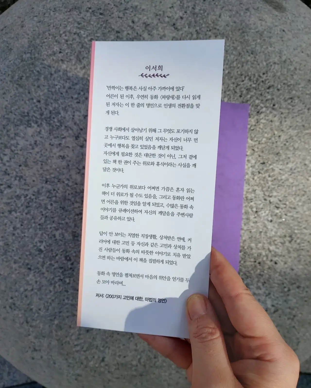 좋은 책 펴 내신 이서희작가님께 다시한번 감사하다는 말씀 올립니다.