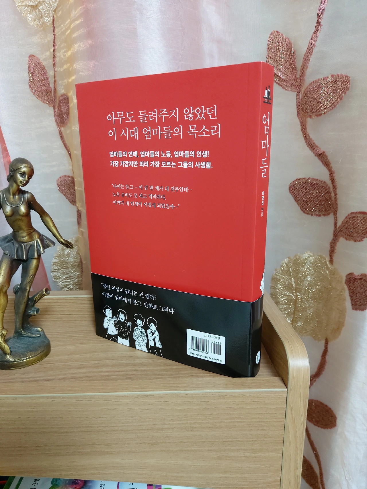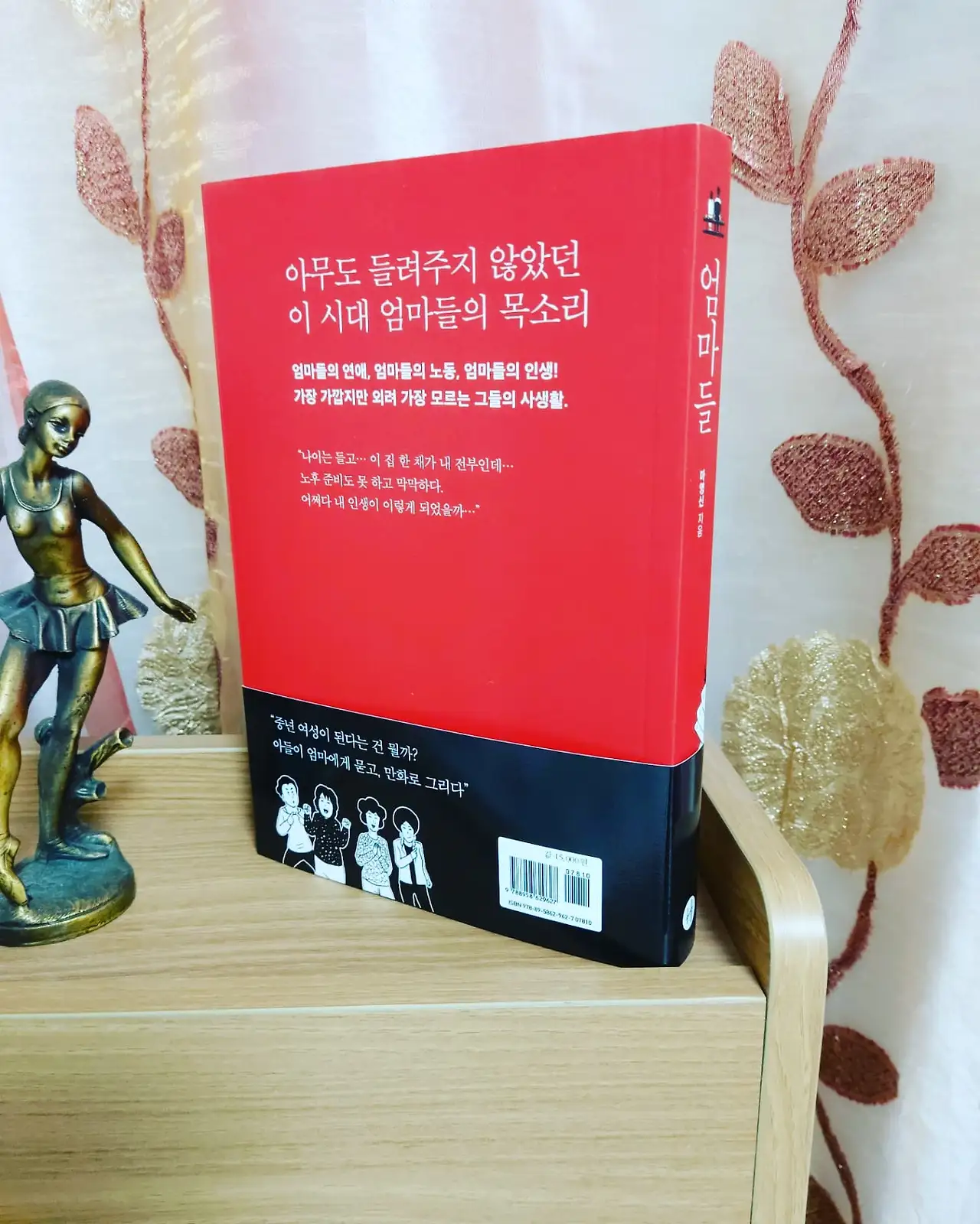 이 책에 나오는 엄마들은 50대 후반이다. 이제 자식들이 다 커서 손이 안가고, 남편은 셋째가 태어나자 노름으로 집안을 말아먹어서 오래전에 혼자 세 자식을 다 키우면서 일까지 해야 하는 엄마가 주인공이다. 나머지 세 명의 엄마들은 엄마 친구들이다. 중년여성이 되면 모두 그렇게 남자를 찾게 되는 걸까? 엄마들은 사랑에 목이 말라, 바깥남자에게 정을 준다. 무조건적인 사랑은 없었다. 바깥남자들은 모두 여자들에게 기대기만 했고, 여자들은 자식과는 또 다른 사랑으로 바깥남자에게 무조건적으로 베풀었다. 그것도 돈으로... 몸도 마음도 돈도 다 내어주는 엄마들. 주인공은 청소부를 하면서 돈을 벌었기에 피같은 돈을 바깥남자에게 베풀었다.
