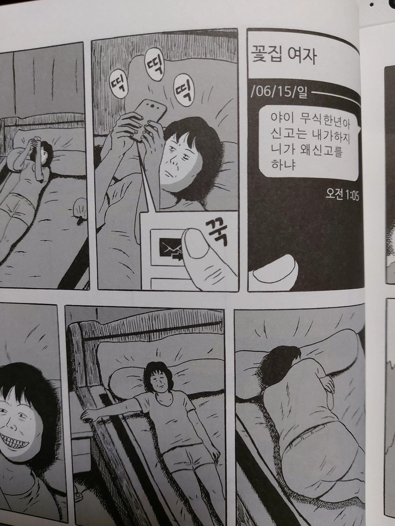 그런데 정말 놀랐다. 엄마말고도 엄마친구들도 다 하나씩 연하인 남자를 만나는 것이다. 삶이 그렇게나 허무한 걸까? 그 나이가 되면 신랑도, 아이도 나를 떠나고, 내 자리가 휑해지면 우울증때문에 그렇게 되는걸까? 이 책을 보면서 그런 생각을 하게 되었다. 바깥남자와 사랑에 빠지는 거 말고는 할 수 있는 게 없는 걸까? 난 이 내용이 왜이렇게 구역질이 나는지 모르겠다. 가 아직 너무 어린걸까? 나쁘게 해석하자면, 엄마들은 가정에서나 사회에서나 연애에서나 모두 희생을 한다는 거다. 그리고 좋게 해석하자면, 엄마들은 그 희생을 바깥남자를 만나 사랑을 받는 것으로 보상을 받는다는 이야기다.