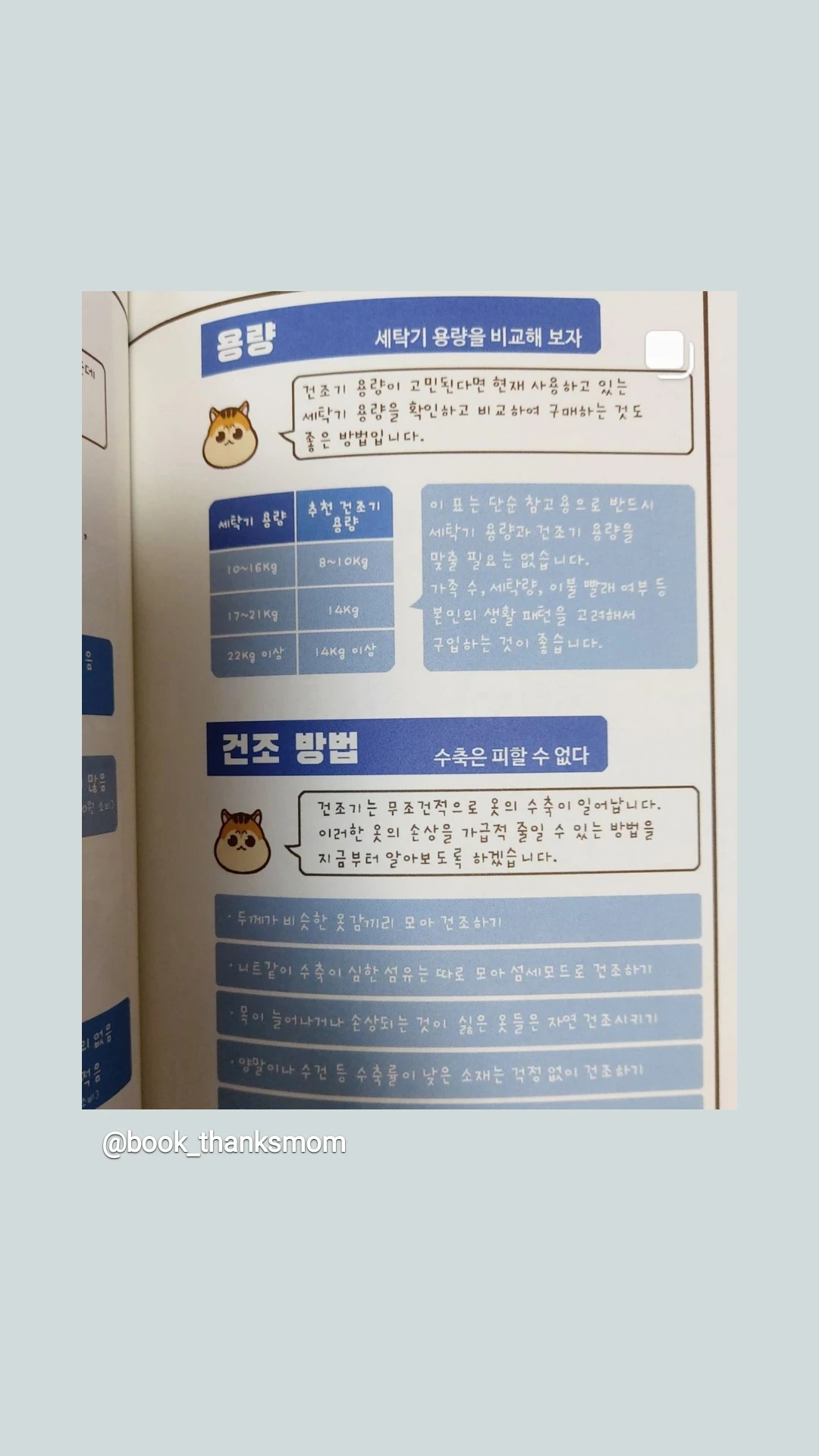 P.75 우리에게 딱 맞는 세탁기를 찾아서 – 세탁기가 크다고 용량이 큰 것이 아니다.!! KG수가 큰 것은 모터의 힘이 강한 것이다. 세탁기가 크다고 무턱대고 이불과 이것저것 섞어 넣지 마시길..ㅠㅠ 반드시 KG수를 보시고 지켜서 사용해주세요. (세탁기 고장내본 1인)