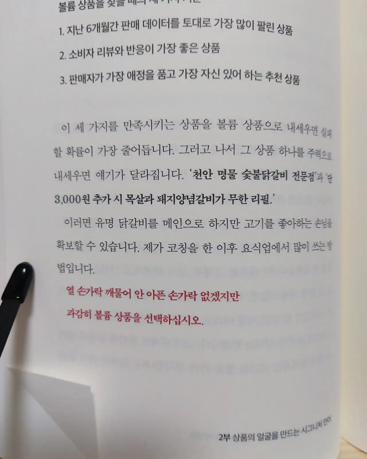1 .소비자에게 들은 즉시 주력상품 한 가지를 바로 내어 놓는 것.