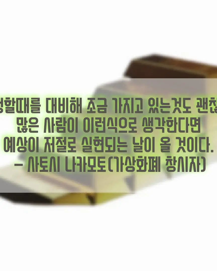 “유행할 때를 대비해 조금 가지고 있는 것도 괜찮다. 많은 사람이 이런식으로 생각한다면 예상이 저절로 실현되는 날이 올 것 이다.-사토시 나카모토 2009년 1월 16일