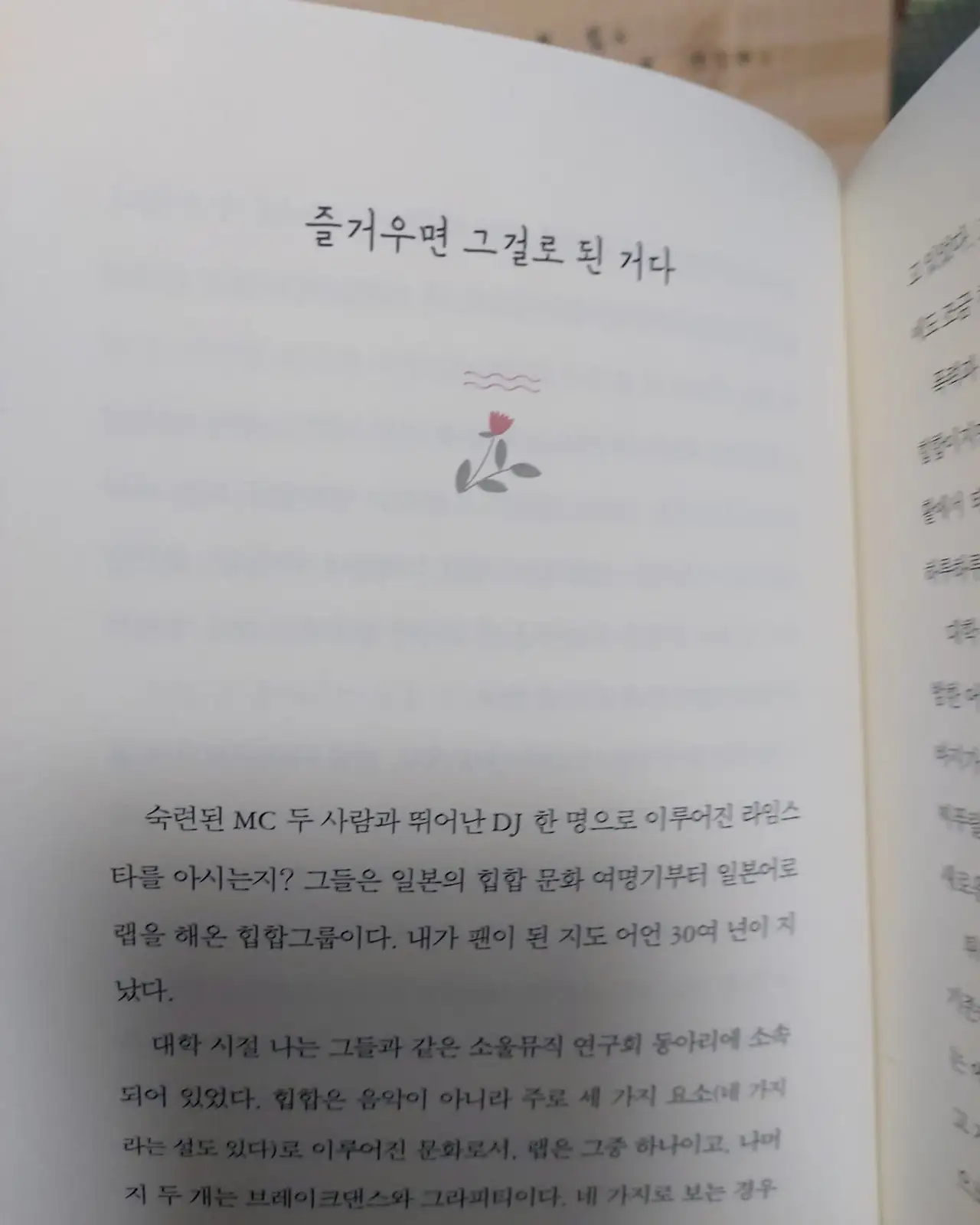 작가가 느끼는 일상의 사소한 것들에 작고 크게 공감하면서 우리나라에는 남성과 여성 그리고 아줌마가 있다는 어느 누구의 지나가는 옛이야기가 생각나던 나는 마흔을 넘긴 여성이 아줌마든 그렇지 않든 이 시대, 어느 나라에서건 경계없이 나의 세대가 조금 뒤로 물러난 조연과 같은 삶을 살고 있음을 나타내는 작가의 함의에는 이의가 없는 바이다.