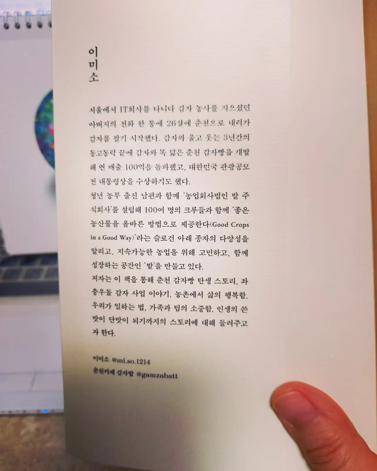이렇듯, 어린시절 부터 자존감을 세워주고 한 번도 성적에 대해 조급함을 보이지 않으며 늘 믿어주시고 칭찬해주시던 부모님이셨기에, 아버지의 호출은 그저 쉽게 거절할 수 있는 간단한 부탁은 아니었을 것이다. 또한 이미소 작가 역시 젊은 나이에, 그것도 강남에 위치한 회사를 다니면서 한창 누릴만한 것들을 포기하고 당장 춘천으로 내려간 건 그녀가 화려한 겉보다는 내실을 볼 줄 아는 진정 똑똑한 사람이기 때문이라는 생각도 해본다.