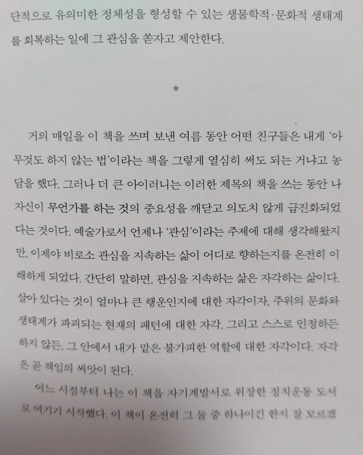 책은 말한다. 아무것도 하지 않는 것만큼 힘든 일은 없다고. 그러나 이것은 새로운 알아차림이라고.