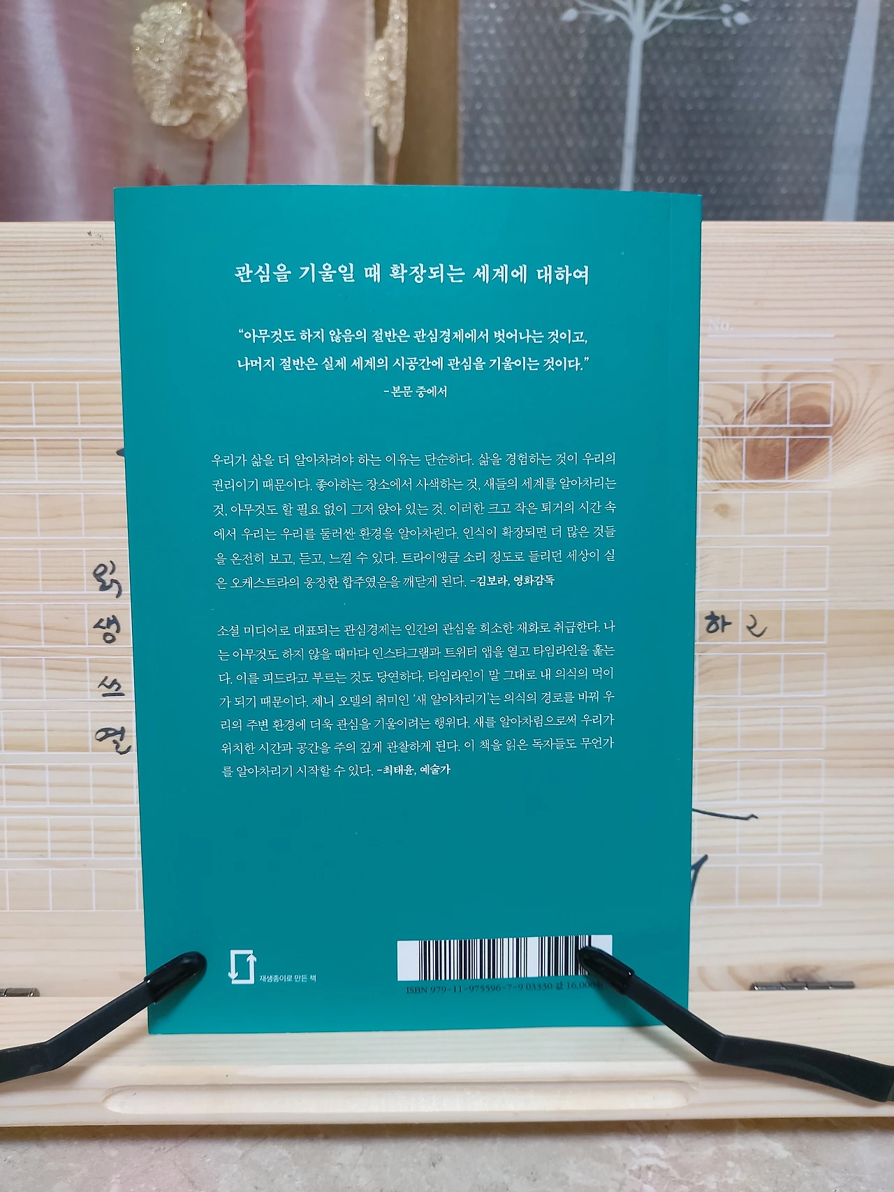 생각이 현실이 되는 4차산업혁명 시대에 우리의 생각은 큰 물결(관심경제)을 따라 흘러가고 있는 것에 대해 스스로 알아차리고 있는지. 나무는 인간에게 목재로서의 가치로만 매겨지기에 쓸모있는 나무는 오히려 일찍 베어져 없어진다. 하지만 우주와 자연의 역사는 그 자리를 오래 지킨 나무에게서 그 뿌리를 발견할 수 있는 아이러니가 있다. 인간은 영생할 수 없다. 영생할 것 처럼 꿈을 꾸고 희망하지만 사실 가장 큰 행복은 지금 이 순간에 있다. 아무것도 하지 않는 것은 곧 지금 당장 이 글자 하나하나를 읽는 순간을 알아차리는 것과 같은 이치다.