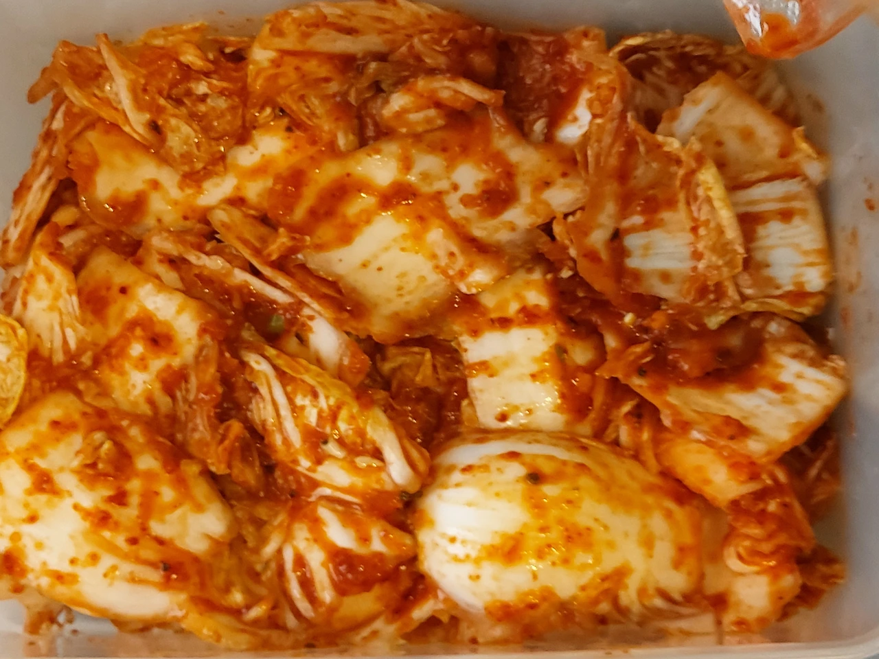 몇시간 전에 담근 내 인생 첫 김치와 함께...
