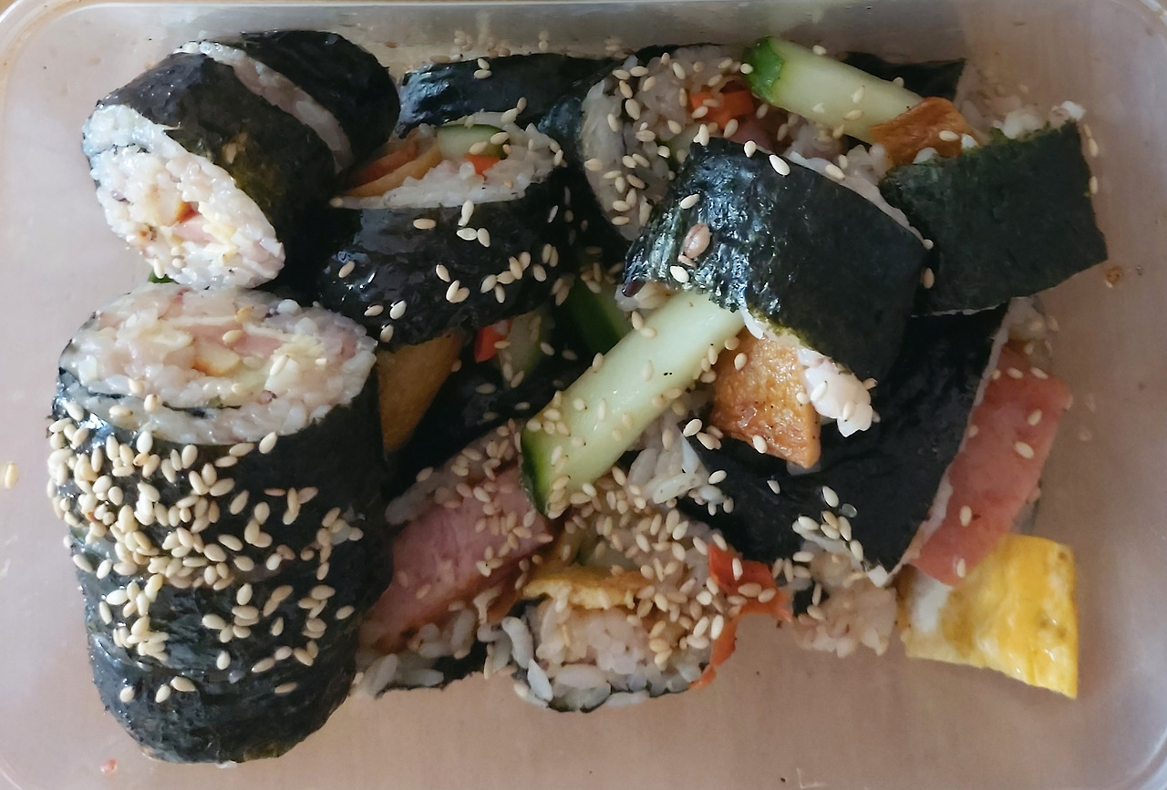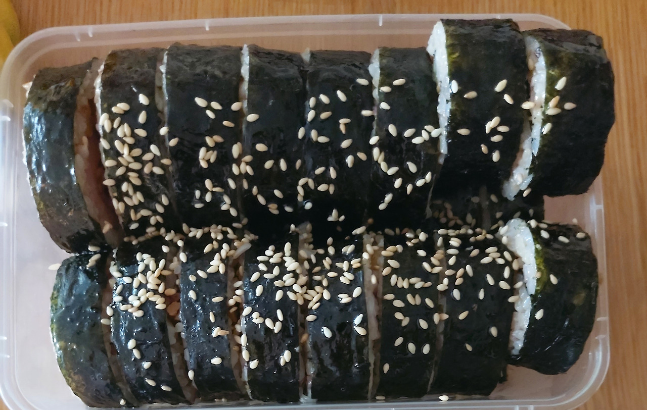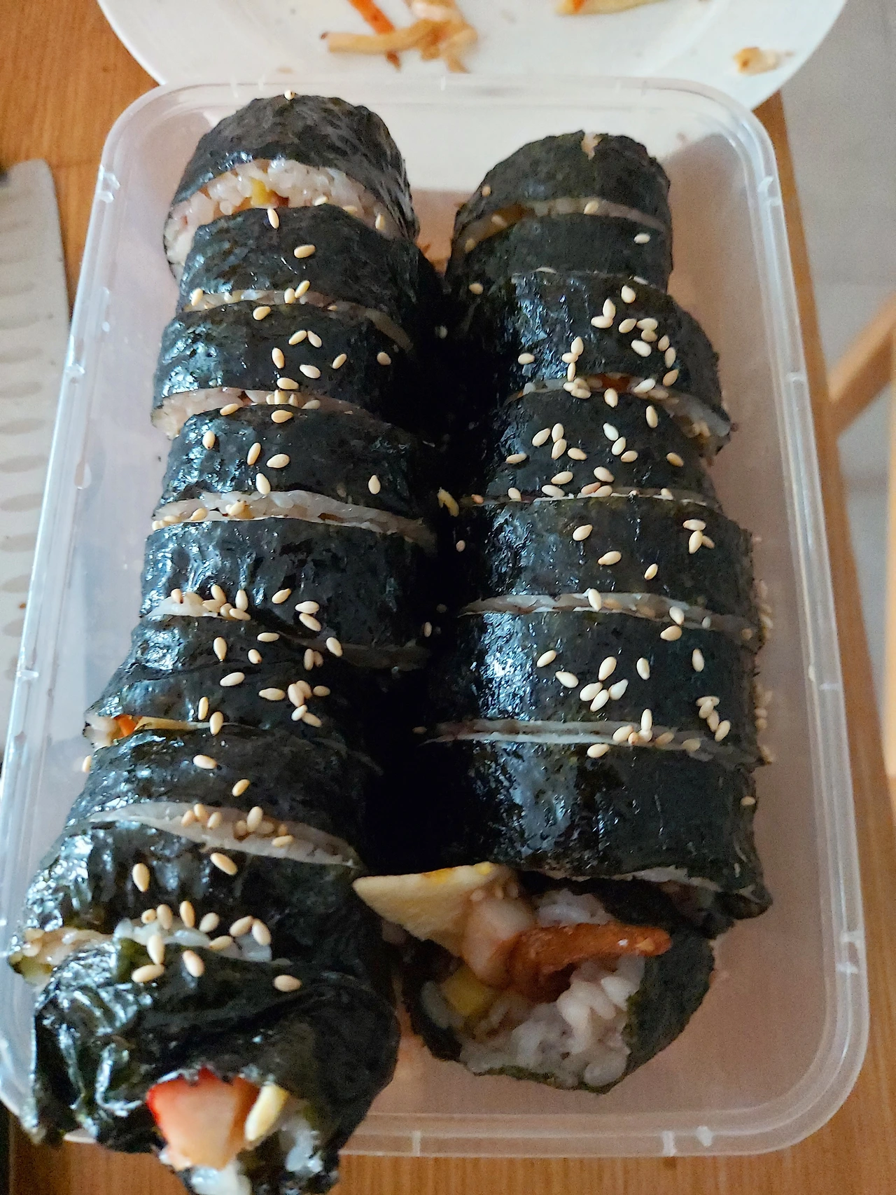 한국에 살 때도 간혹 김밥을 둘둘 싸 보곤 했는데