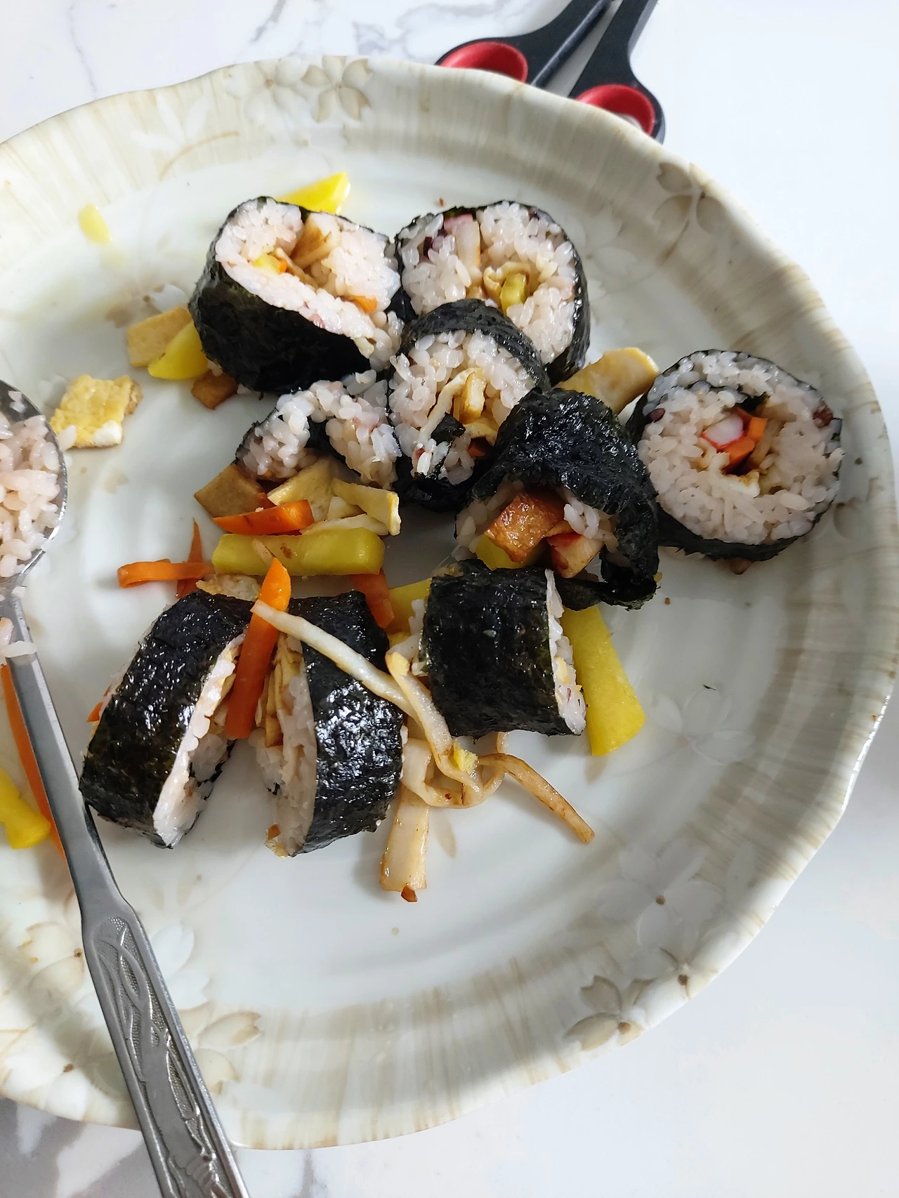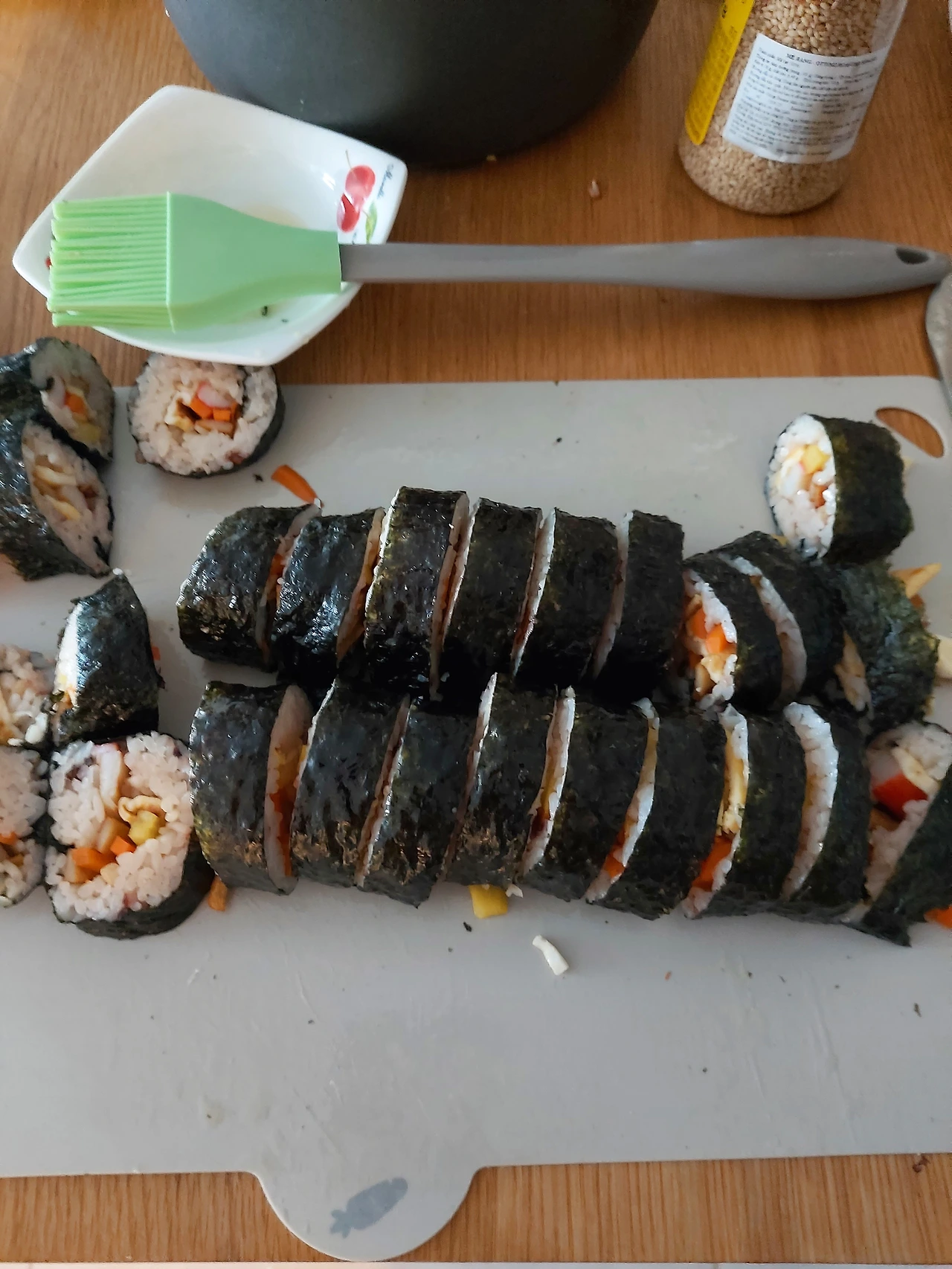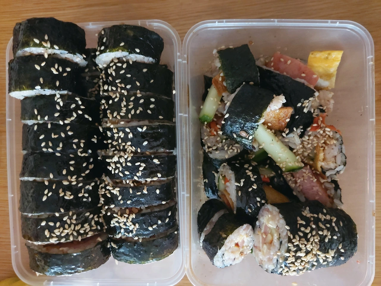 한국에 살 때도 간혹 김밥을 둘둘 싸 보곤 했는데