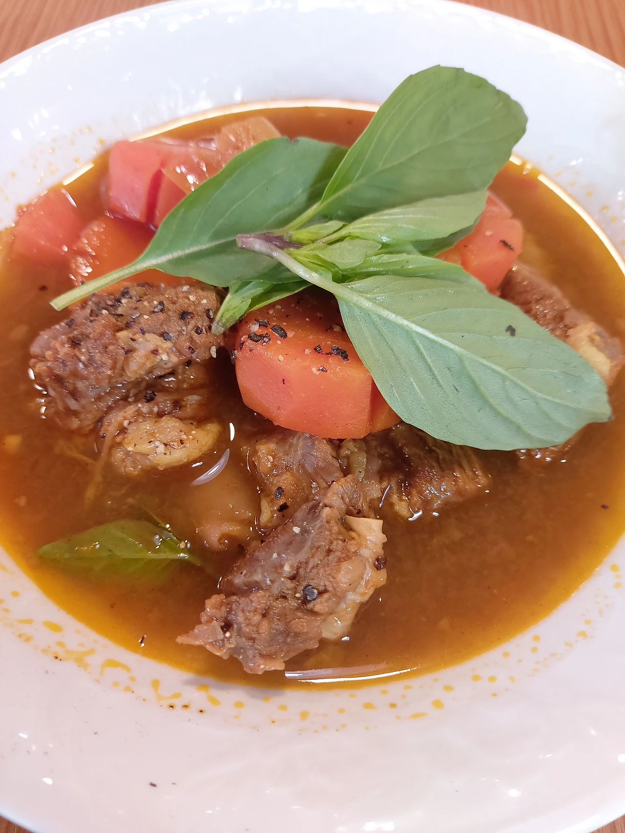 거기서 팔던, 바게뜨 빵과 소고기 수프.