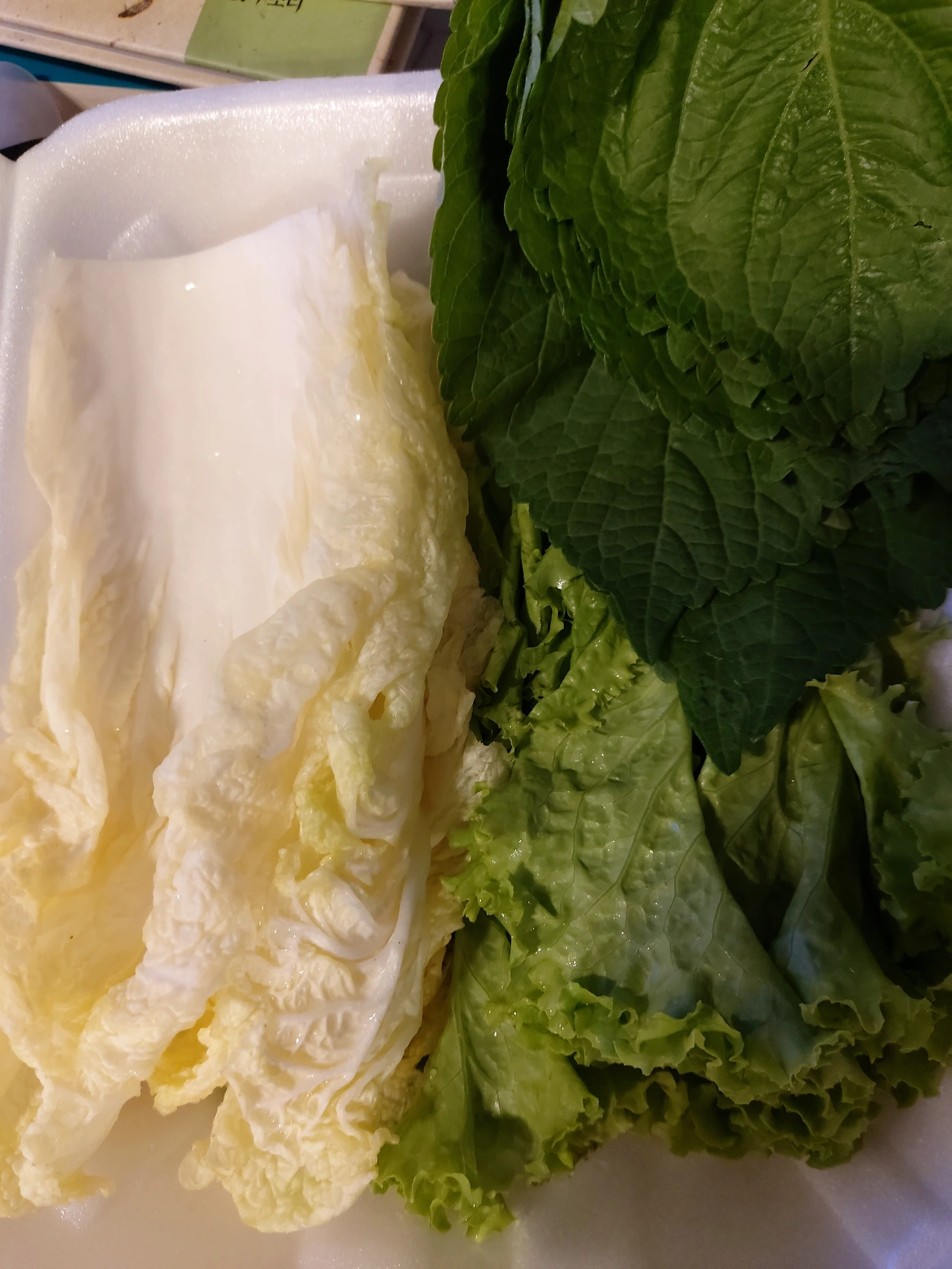 고기는 순식간에 사라졌고, 채소만 듬뿍 남아