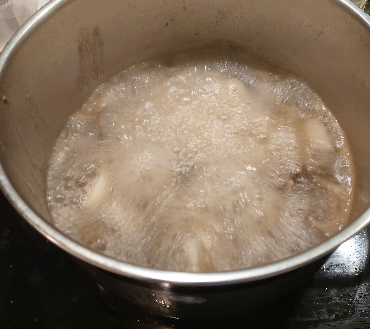다 익히지 않아야 고기가 연하고 국물 맛이 더 구수한 거 같다.