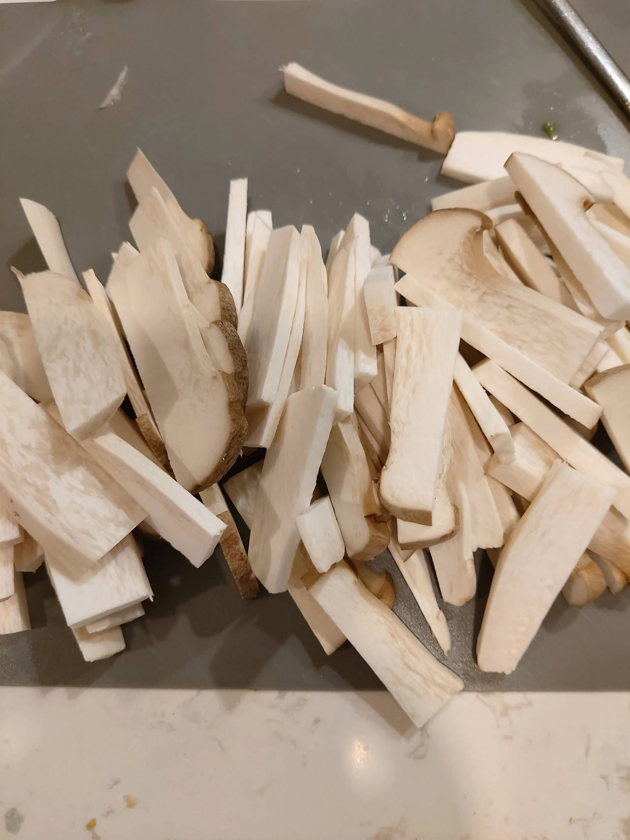 버섯과 파는 모두 고기 크기만큼 동일하게 썬다.